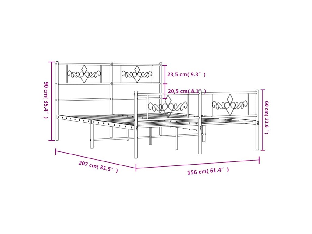 Kovový rám postele s hlavovým a nožním čelem bílý 150 x 200 cm 355336
