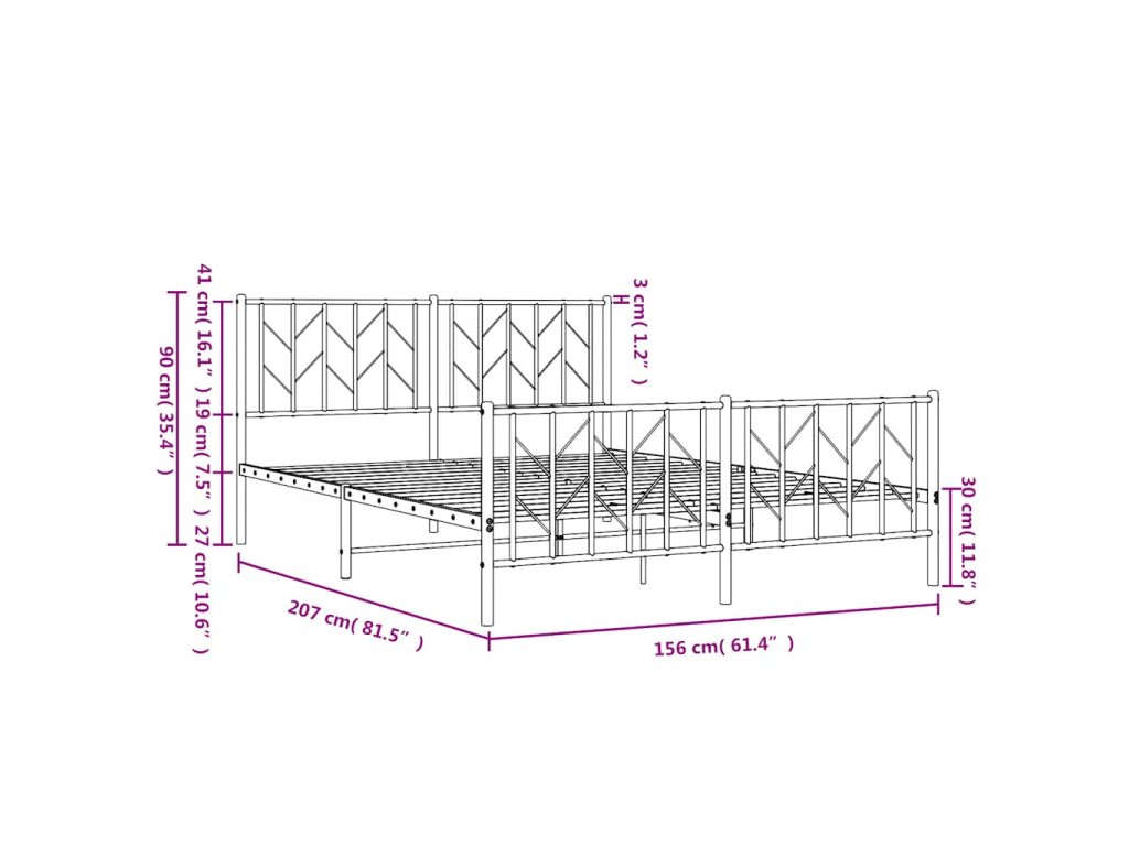 Kovový rám postele s hlavovým a nožním čelem bílý 150 x 200 cm 374506
