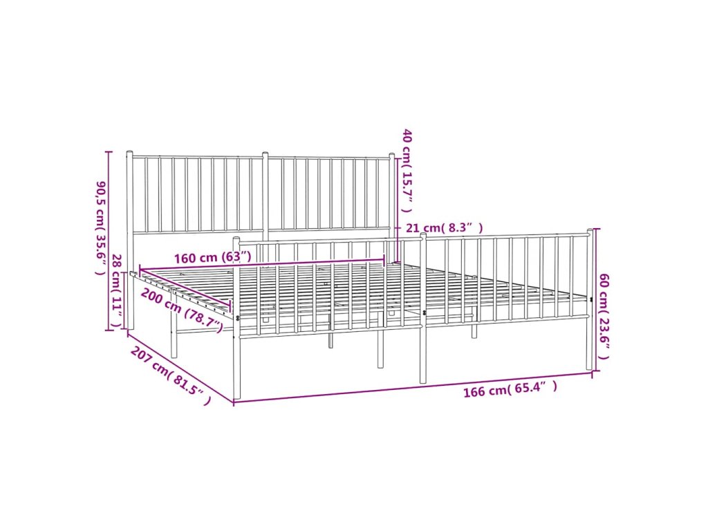 Kovový rám postele s hlavovým a nožním čelem bílý 160 x 200 cm 350952