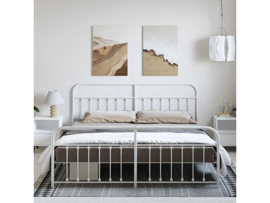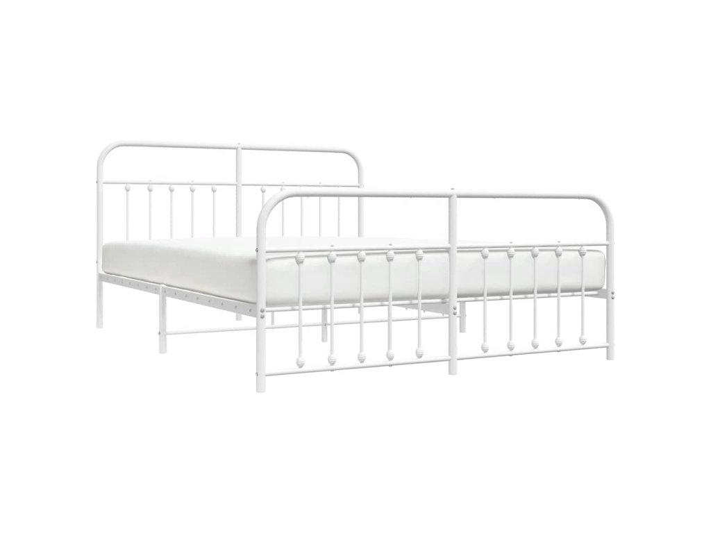 Kovový rám postele s hlavovým a nožním čelem bílý 183 x 213 cm 352650