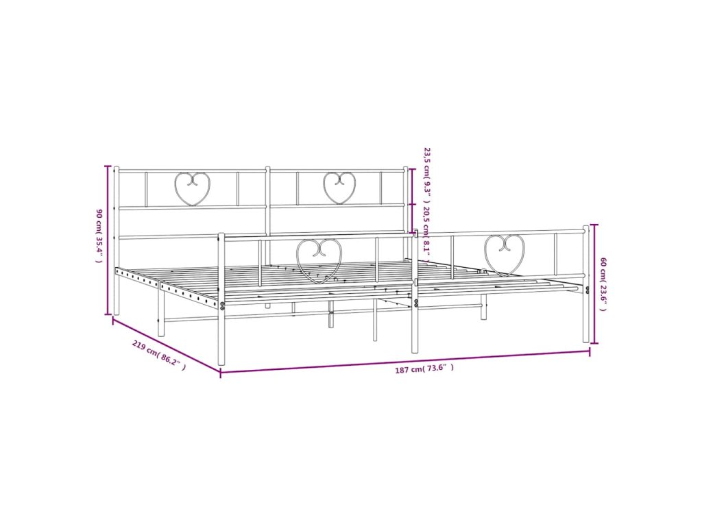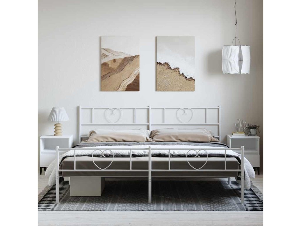 Kovový rám postele s hlavovým a nožním čelem bílý 183 x 213 cm 355535
