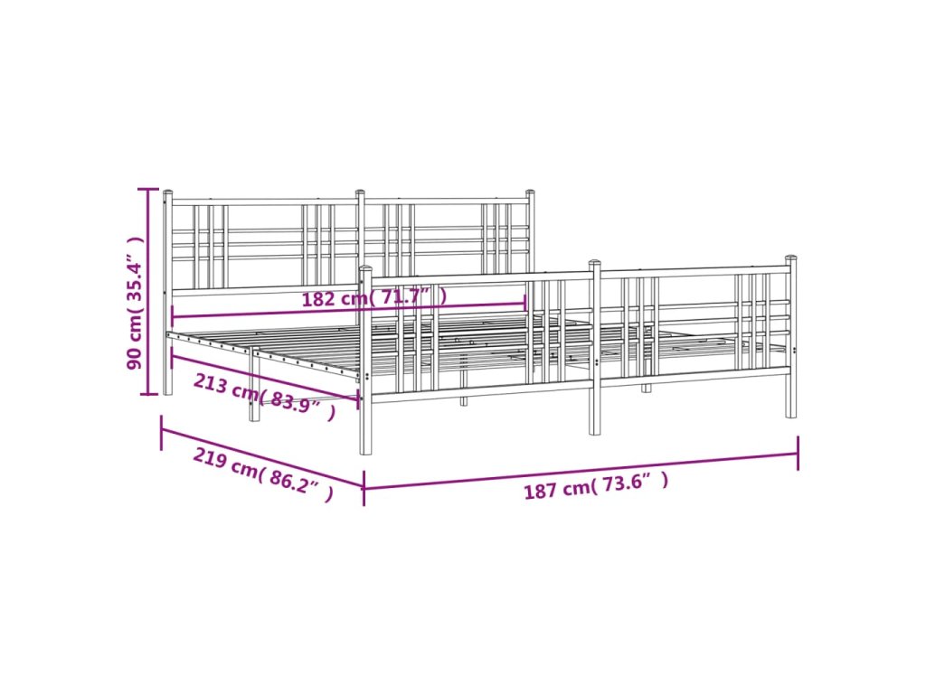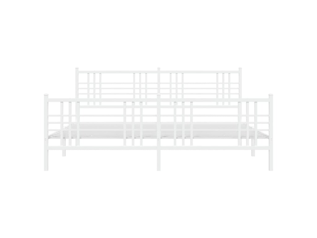 Kovový rám postele s hlavovým a nožním čelem bílý 183 x 213 cm 376396