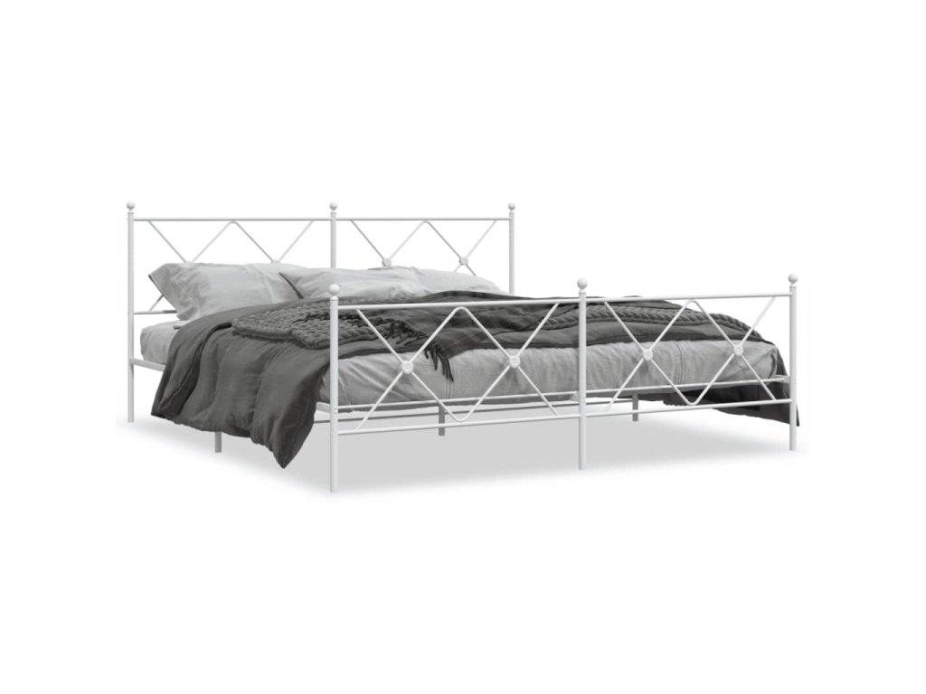 Kovový rám postele s hlavovým a nožním čelem bílý 183 x 213 cm 376574