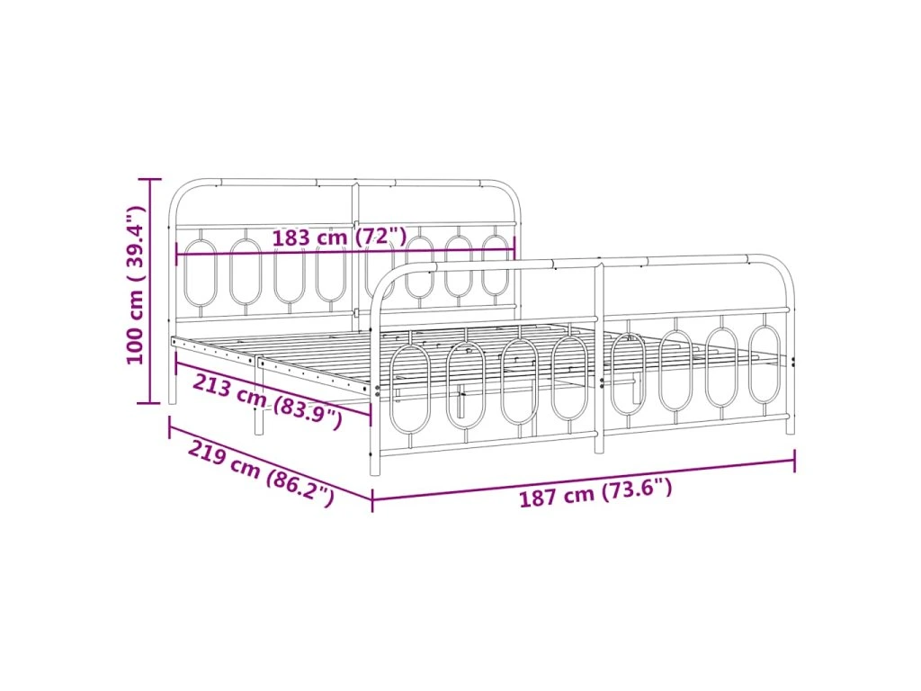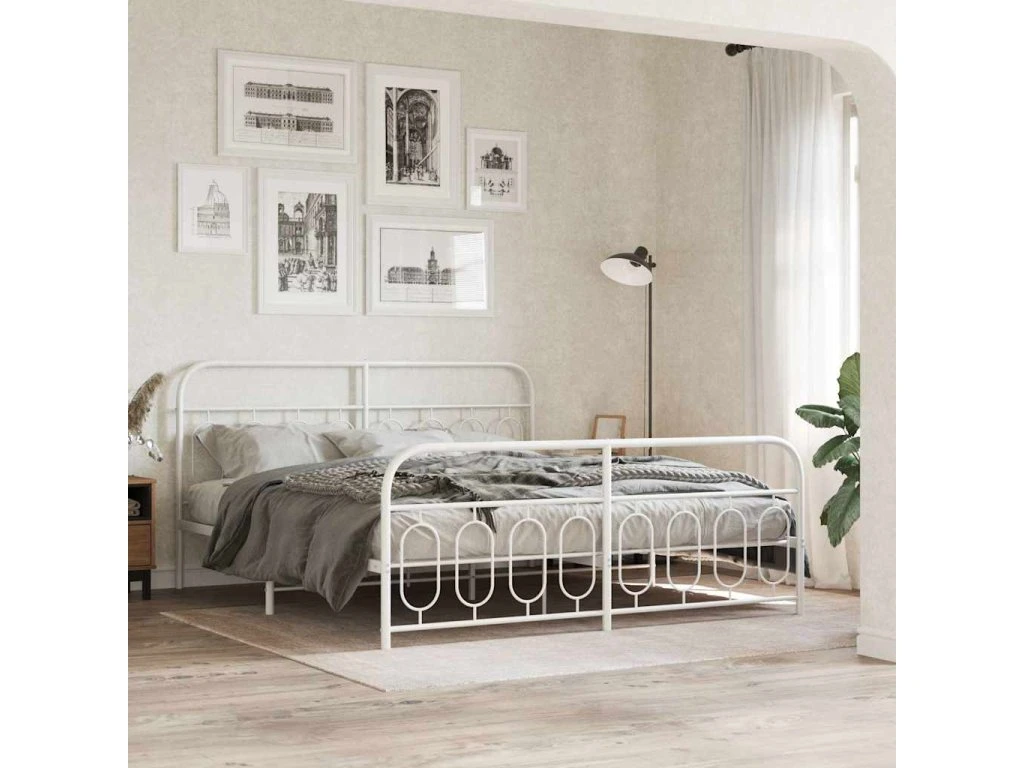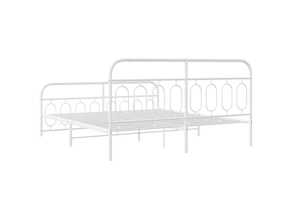 Kovový rám postele s hlavovým a nožním čelem bílý 183 x 213 cm 377189