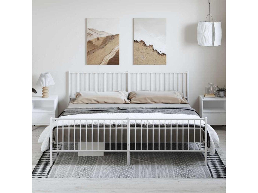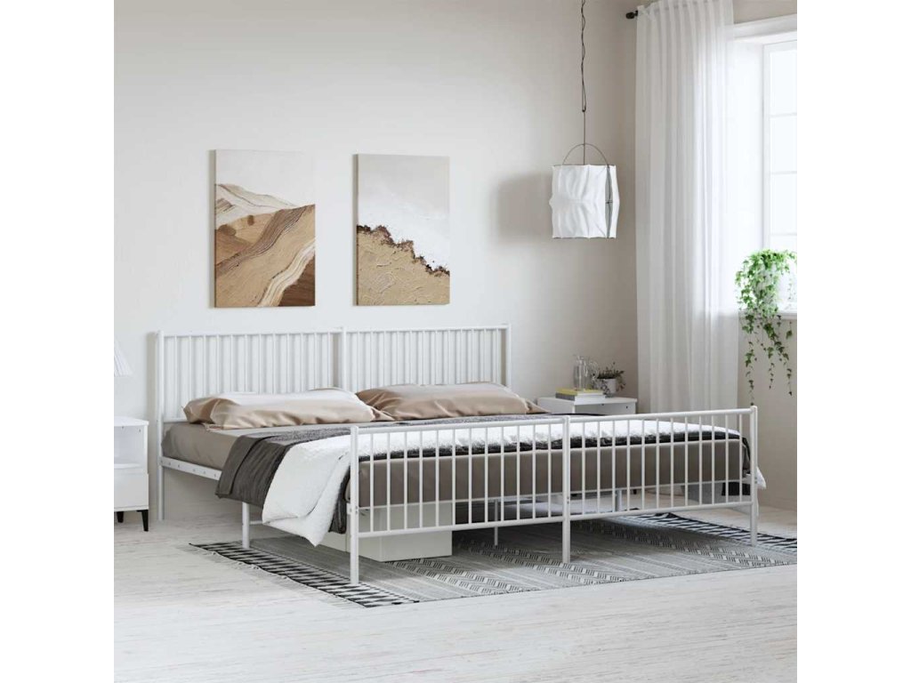 Kovový rám postele s hlavovým a nožním čelem bílý 193 x 203 cm 350955