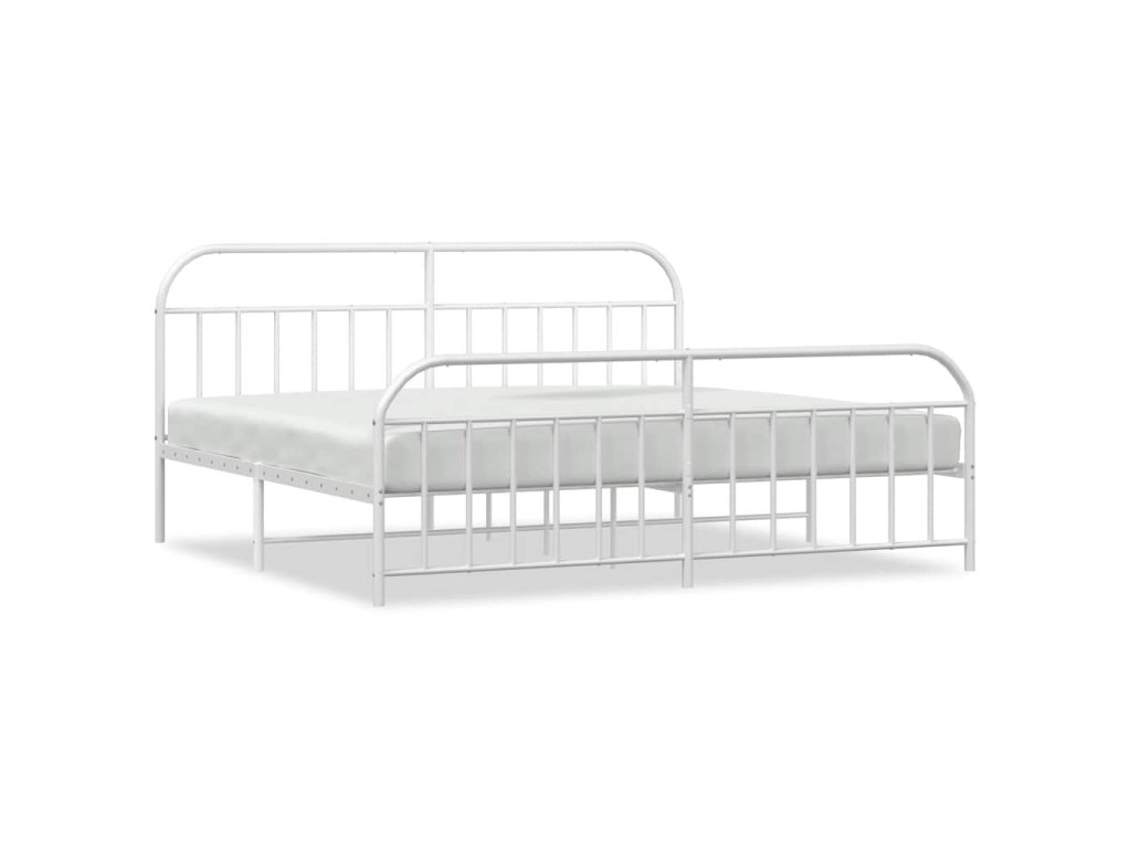 Kovový rám postele s hlavovým a nožním čelem bílý 193 x 203 cm 353708