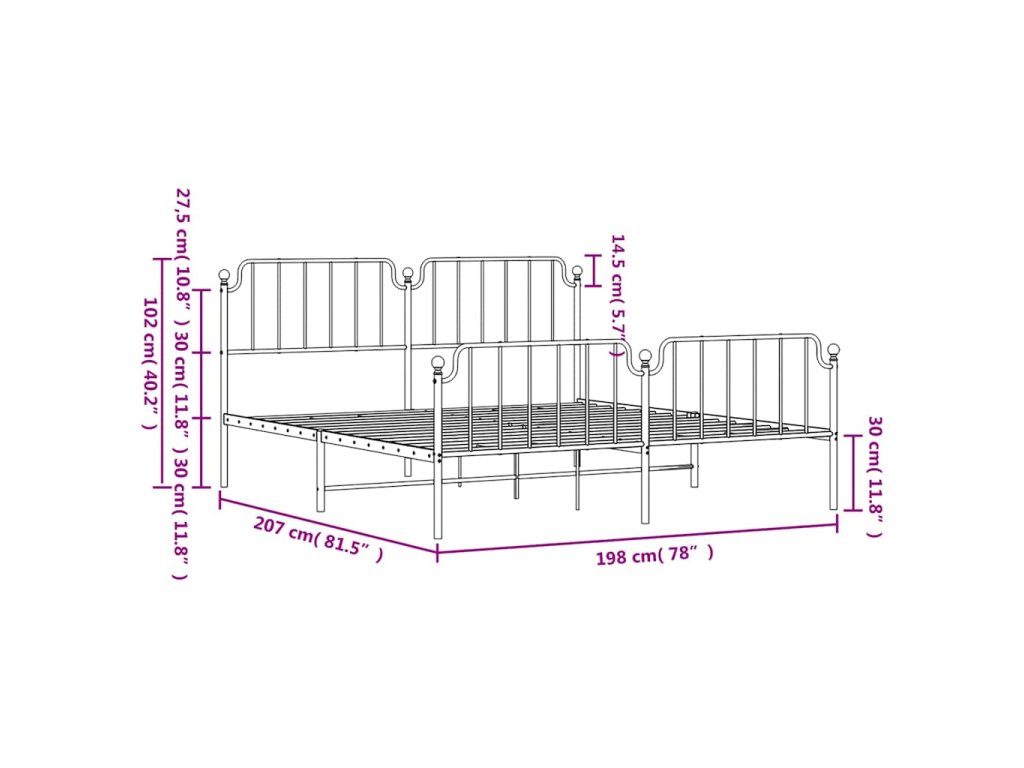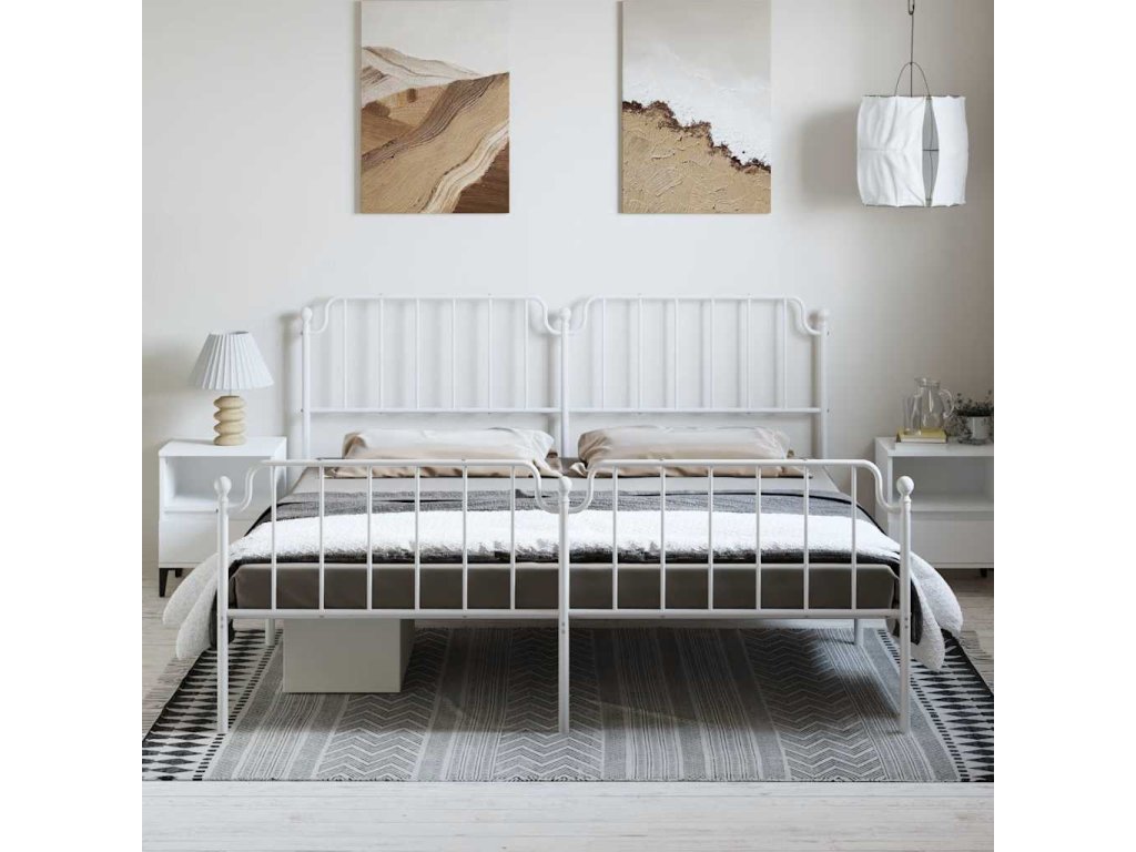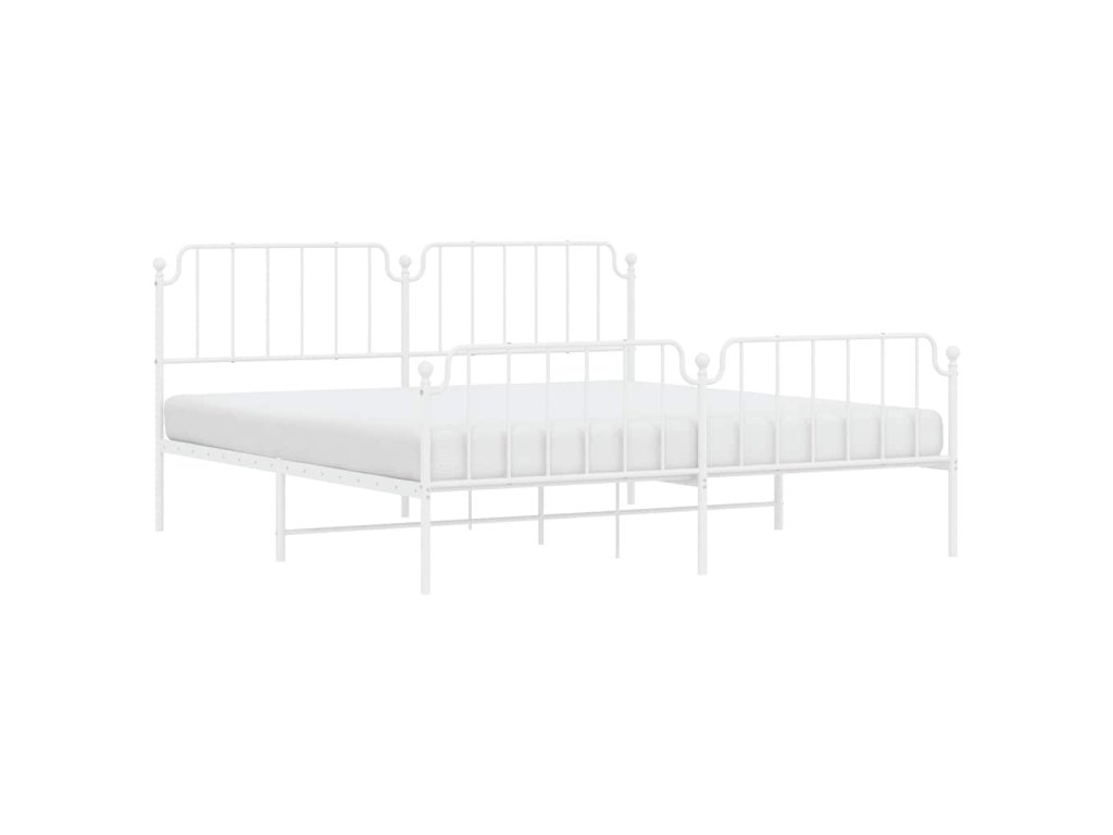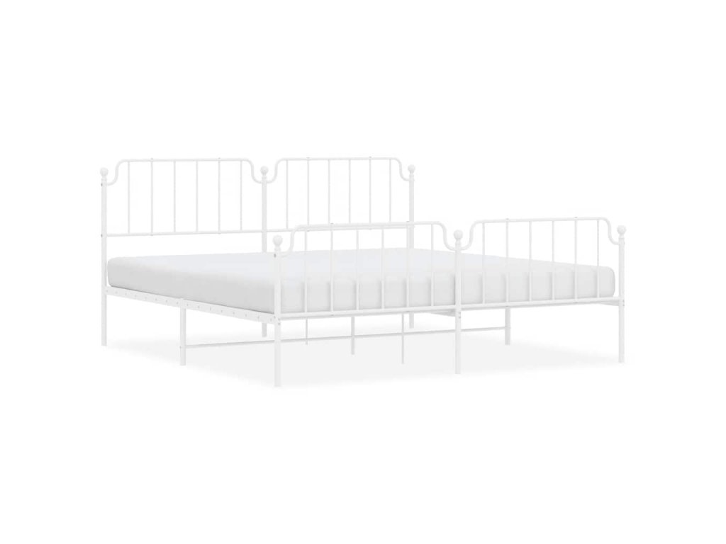 Kovový rám postele s hlavovým a nožním čelem bílý 193 x 203 cm 373960