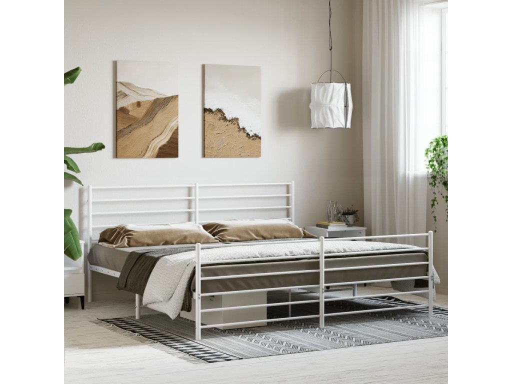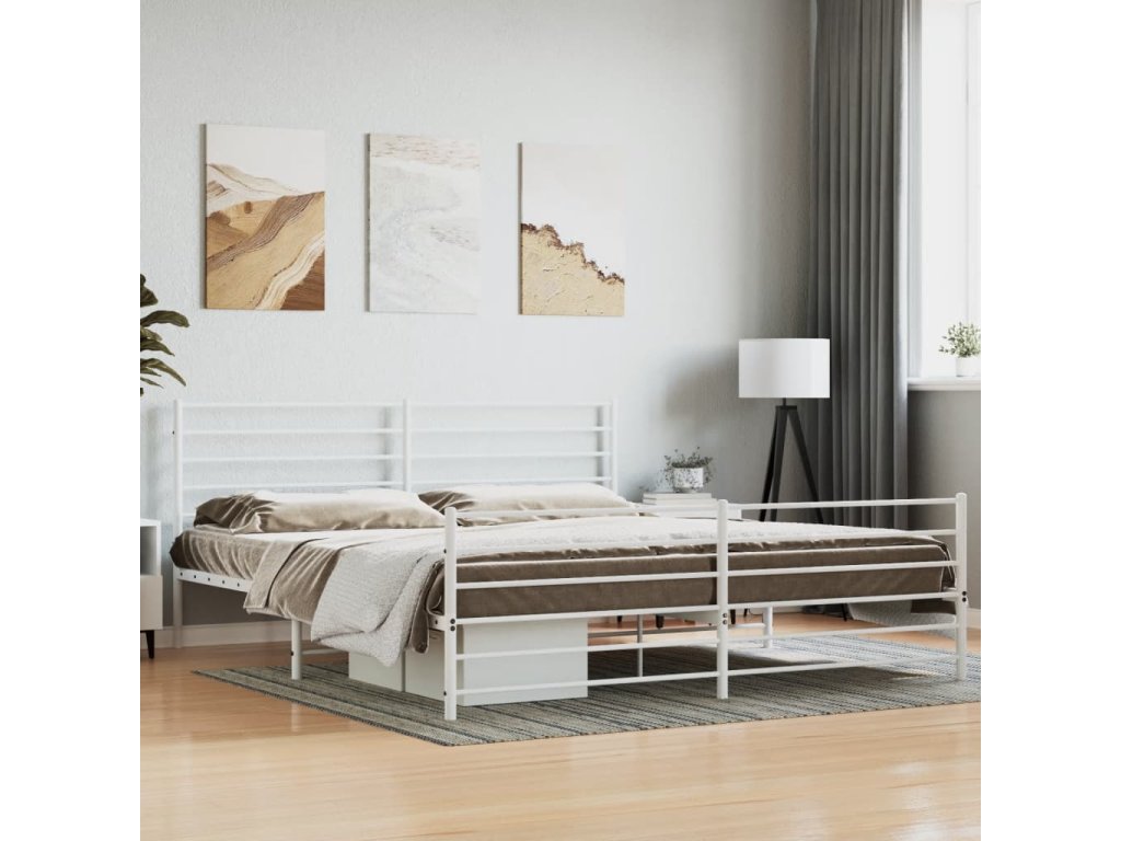 Kovový rám postele s hlavovým a nožním čelem bílý 200 x 200 cm 352393