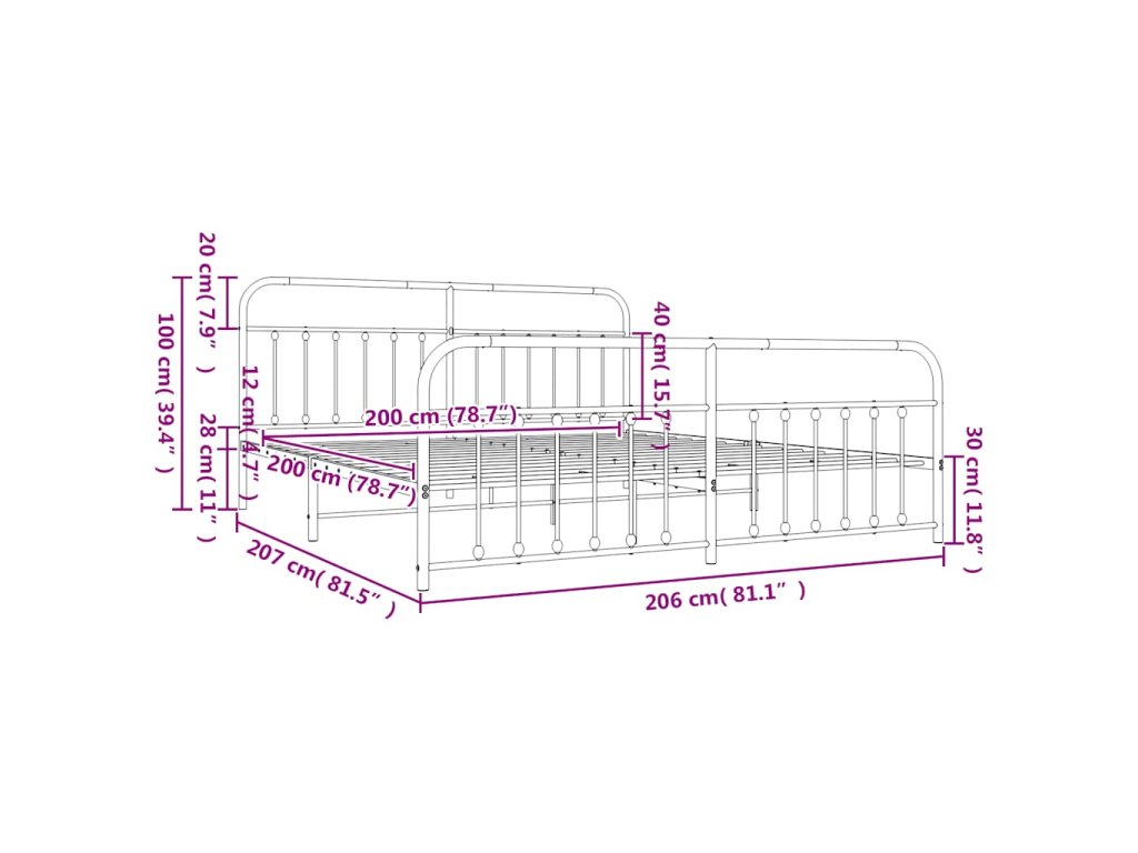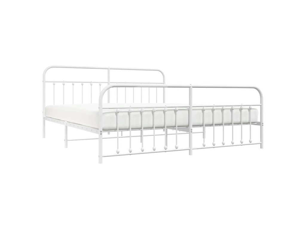Kovový rám postele s hlavovým a nožním čelem bílý 200 x 200 cm 352652