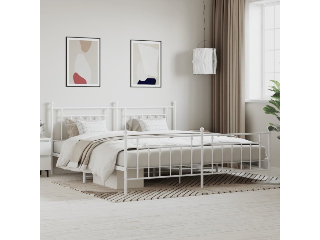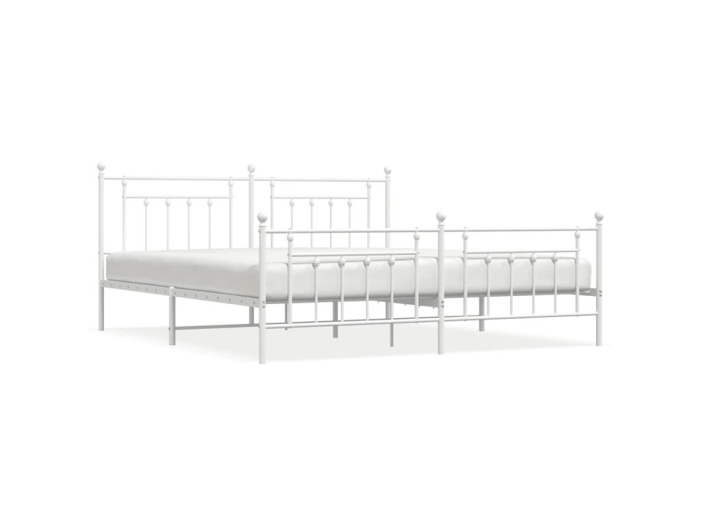 Kovový rám postele s hlavovým a nožním čelem bílý 200 x 200 cm 353611