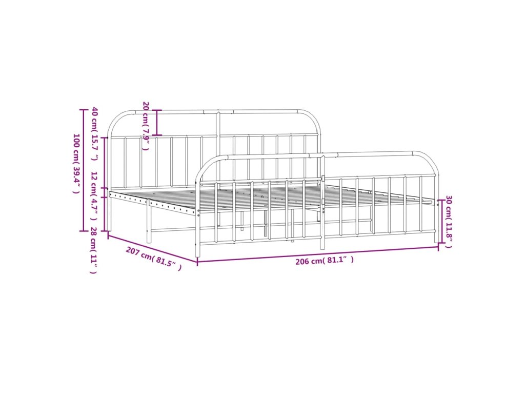 Kovový rám postele s hlavovým a nožním čelem bílý 200 x 200 cm 353709