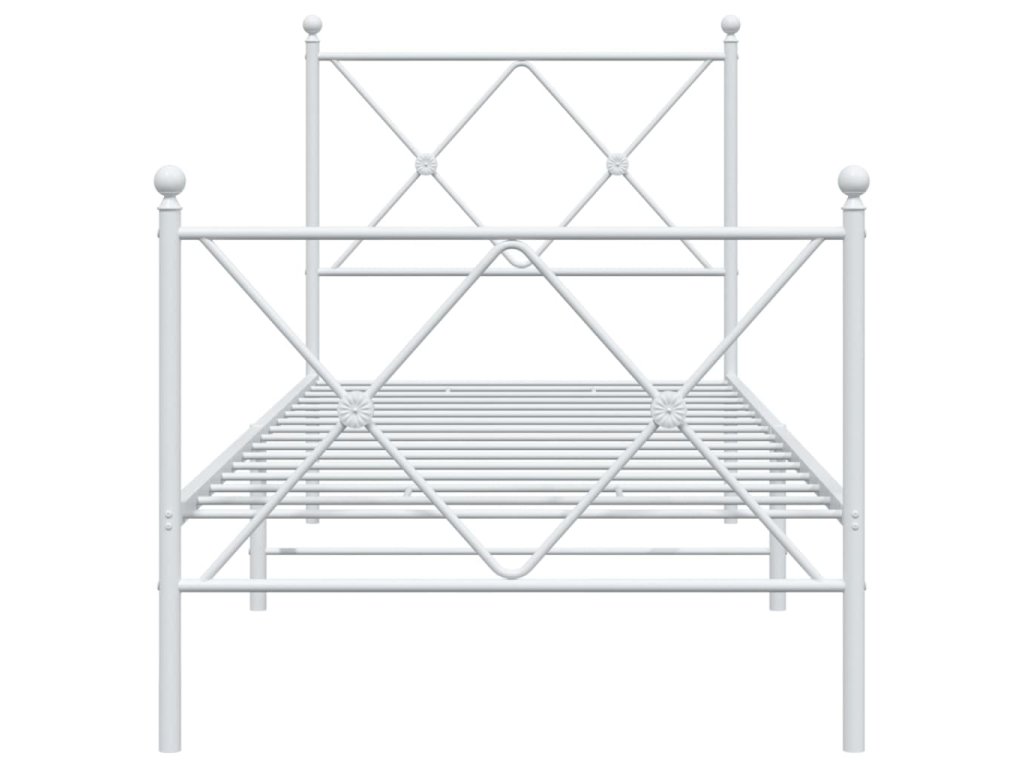 Kovový rám postele s hlavovým a nožním čelem bílý 75 x 190 cm 376559