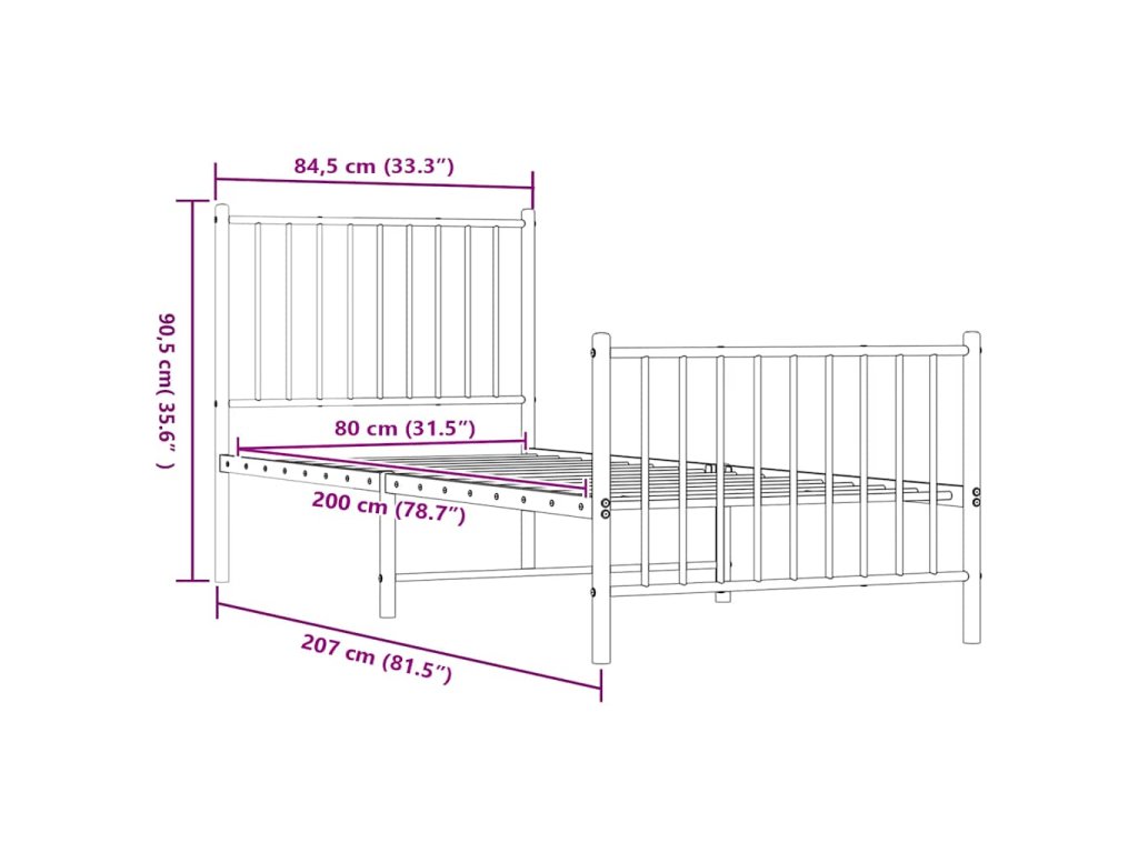Kovový rám postele s hlavovým a nožním čelem bílý 80 x 200 cm 350940
