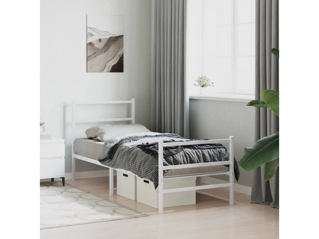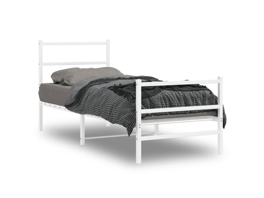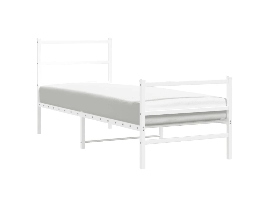 Kovový rám postele s hlavovým a nožním čelem bílý 80 x 200 cm 355423