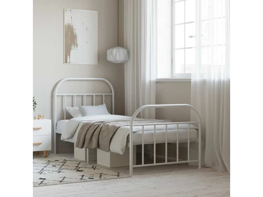 Kovový rám postele s hlavovým a nožním čelem bílý 90 x 190 cm 353694