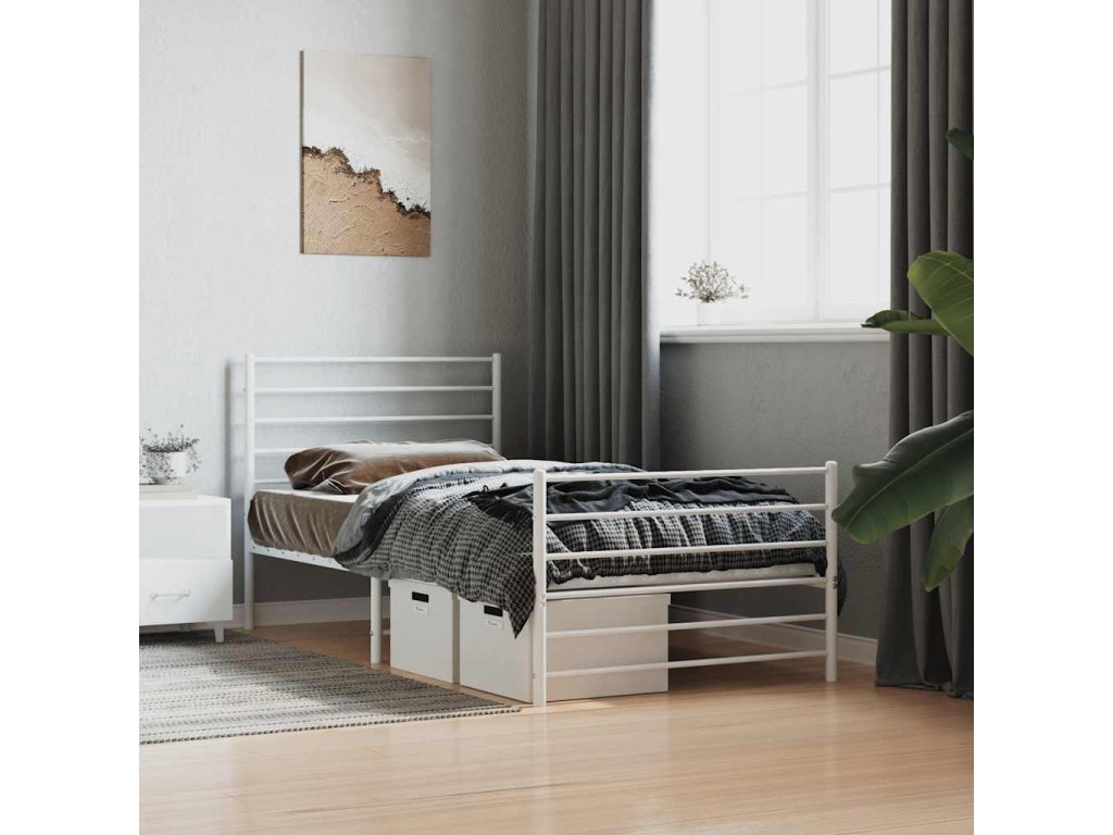 Kovový rám postele s hlavovým a nožním čelem bílý 90 x 200 cm 352379