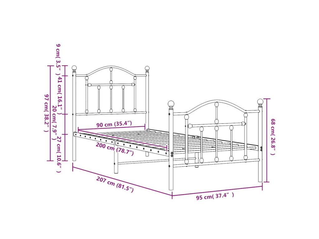 Kovový rám postele s hlavovým a nožním čelem bílý 90 x 200 cm 353499