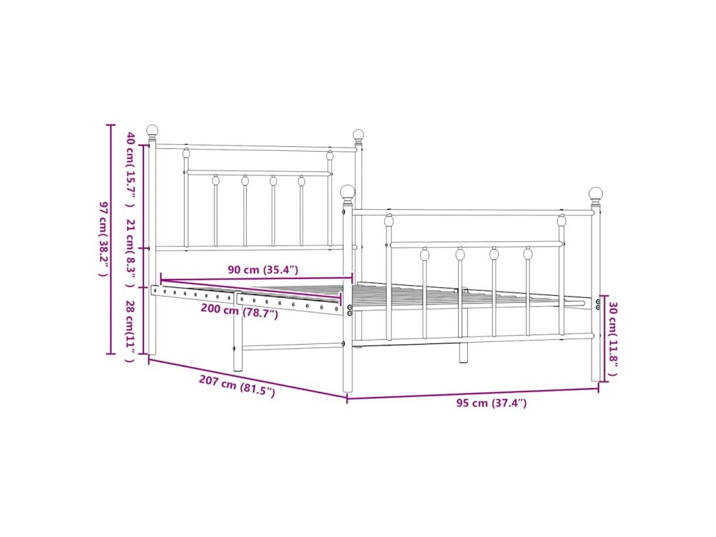 Kovový rám postele s hlavovým a nožním čelem bílý 90 x 200 cm 353597
