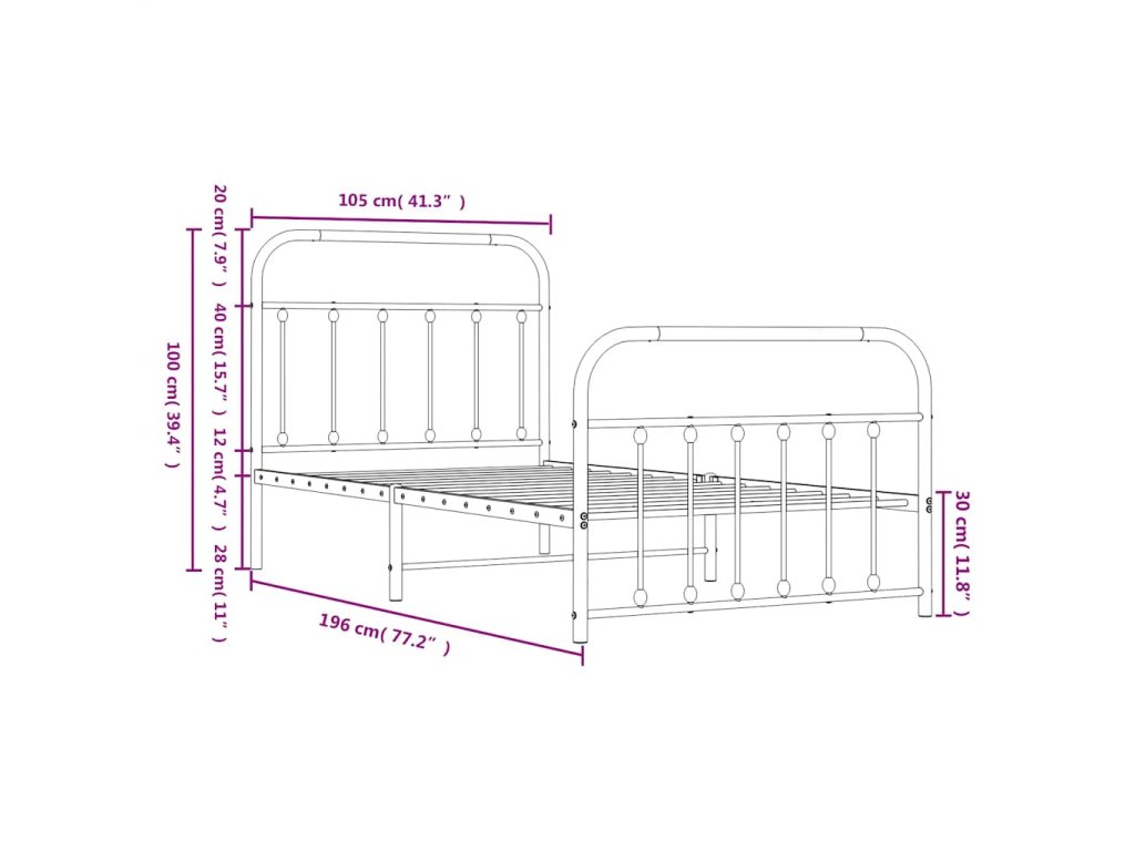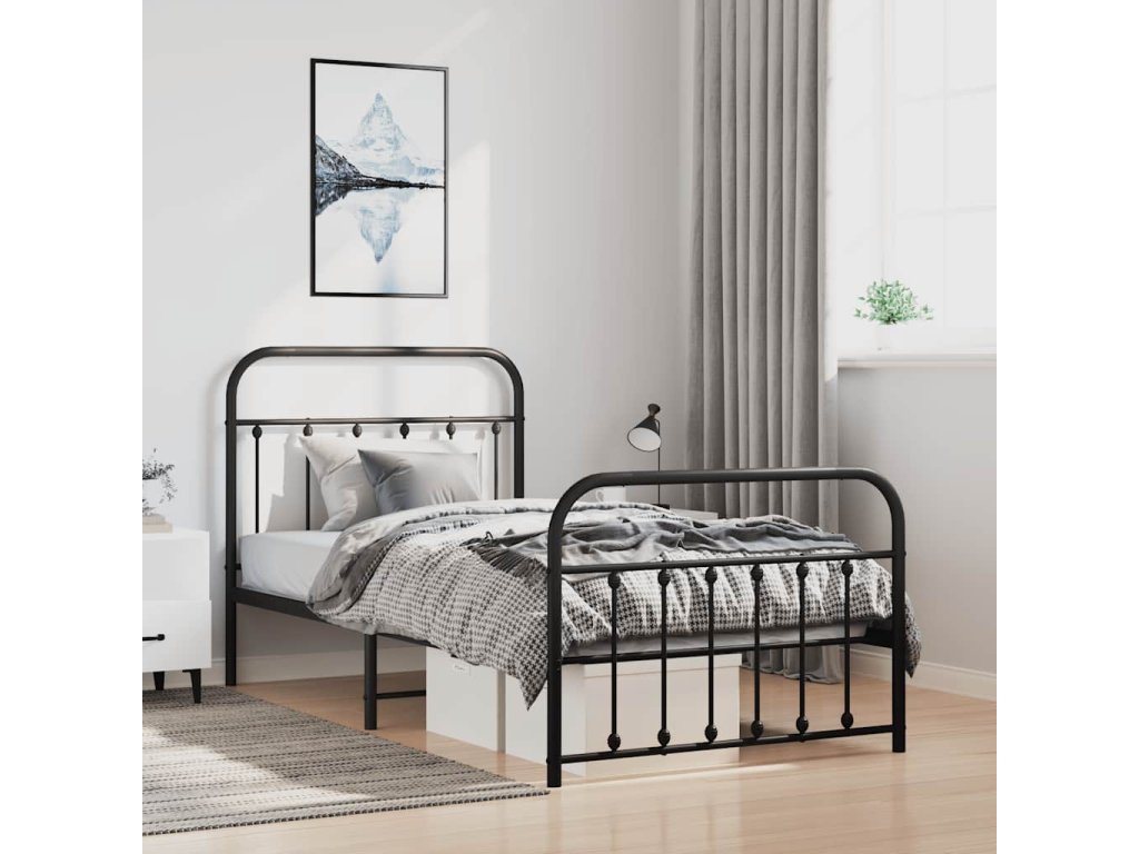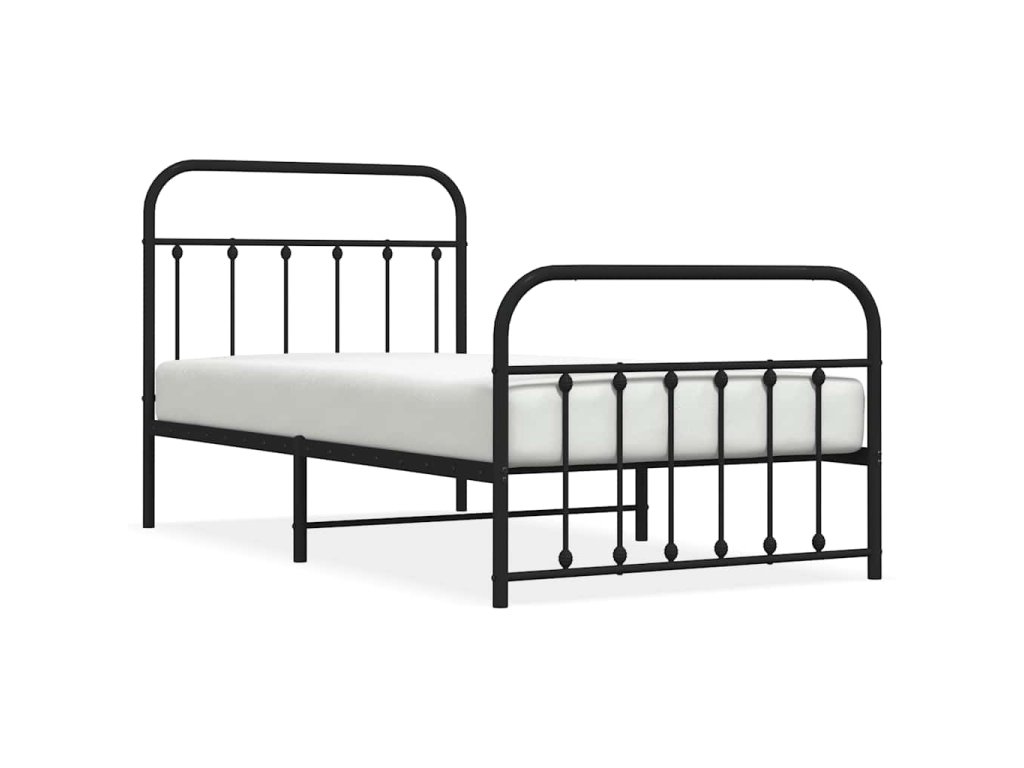 Kovový rám postele s hlavovým a nožním čelem černý 100 x 190 cm 352590