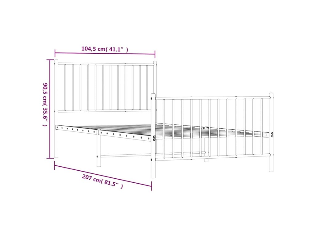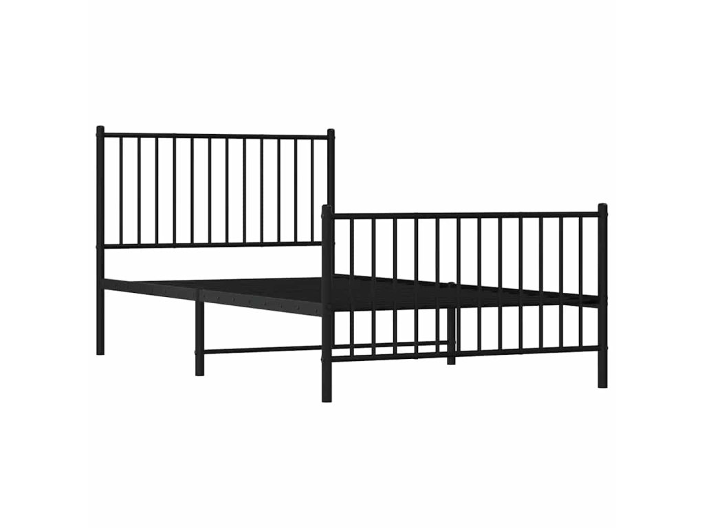 Kovový rám postele s hlavovým a nožním čelem černý 100 x 200 cm 350877