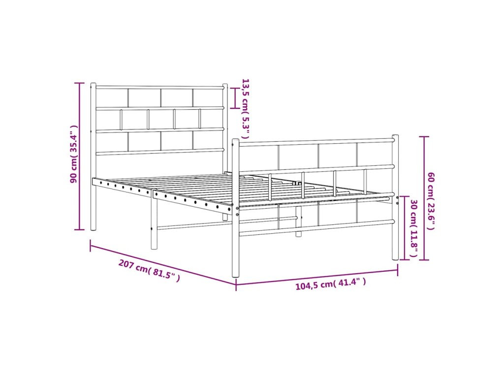 Kovový rám postele s hlavovým a nožním čelem černý 100 x 200 cm 355672