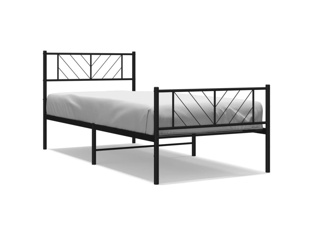 Kovový rám postele s hlavovým a nožním čelem černý 100 x 200 cm 372192