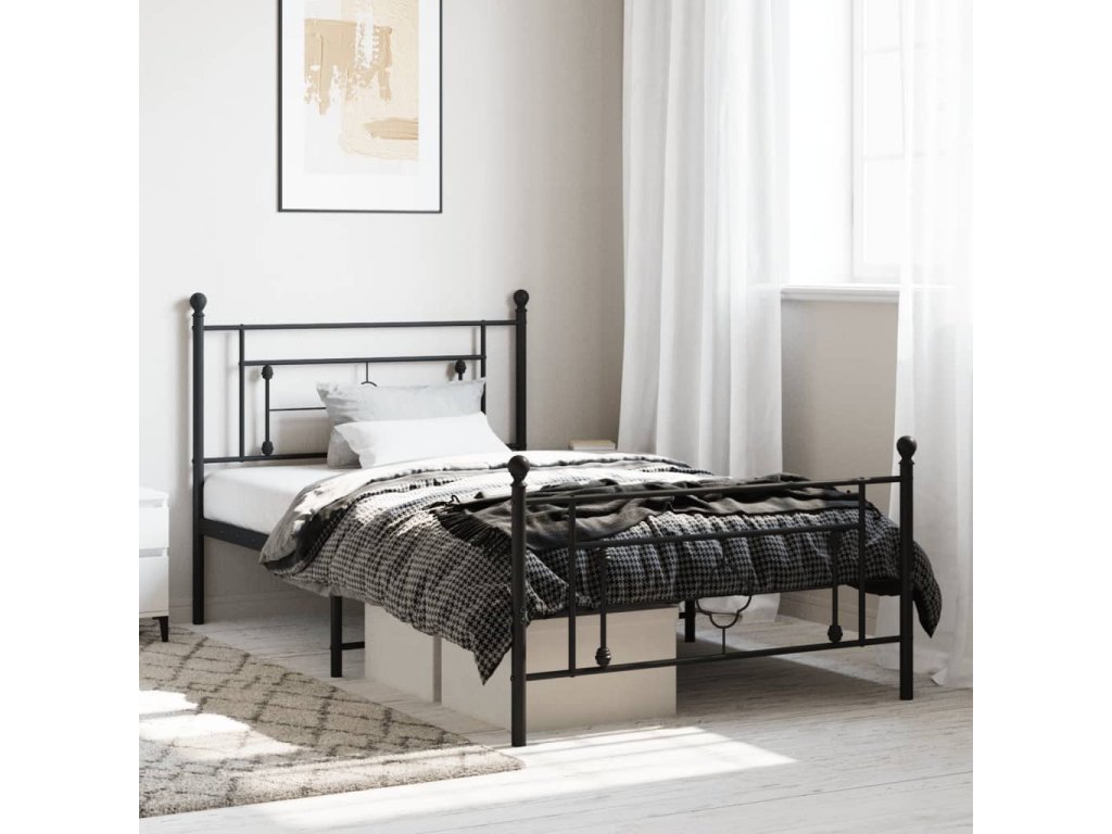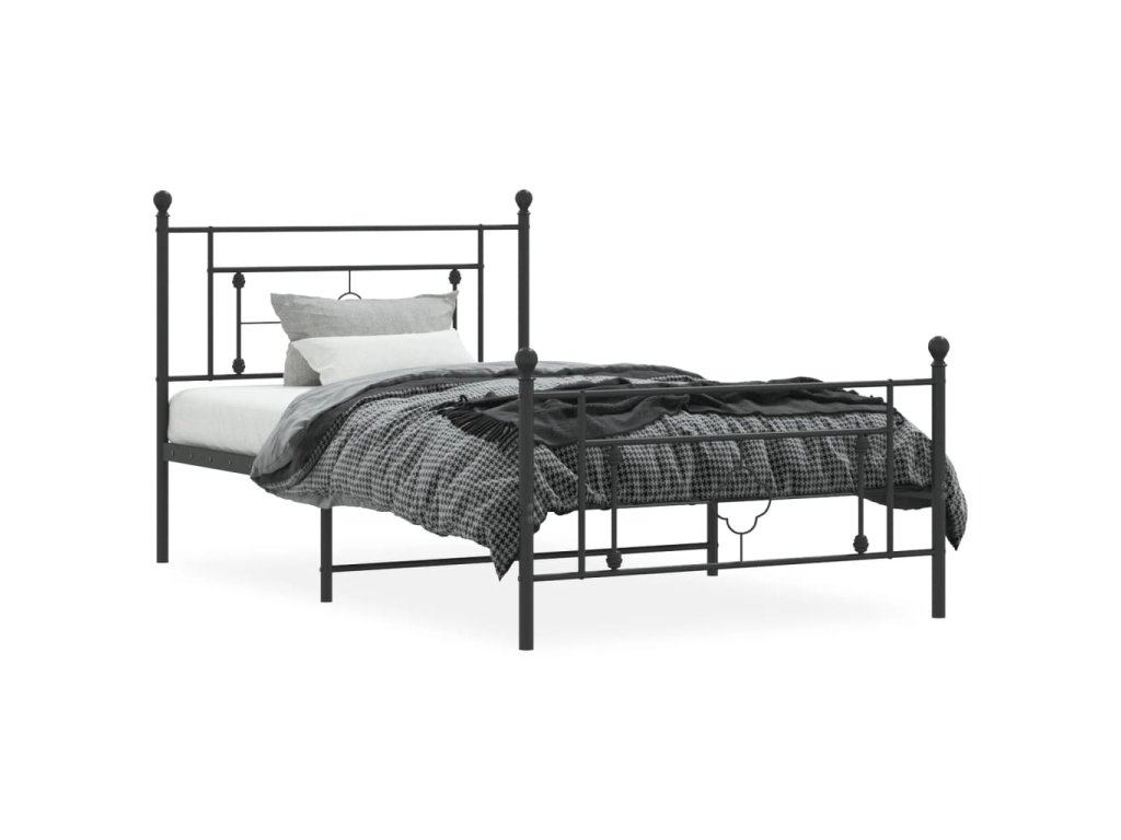 Kovový rám postele s hlavovým a nožním čelem černý 107 x 203 cm 374353
