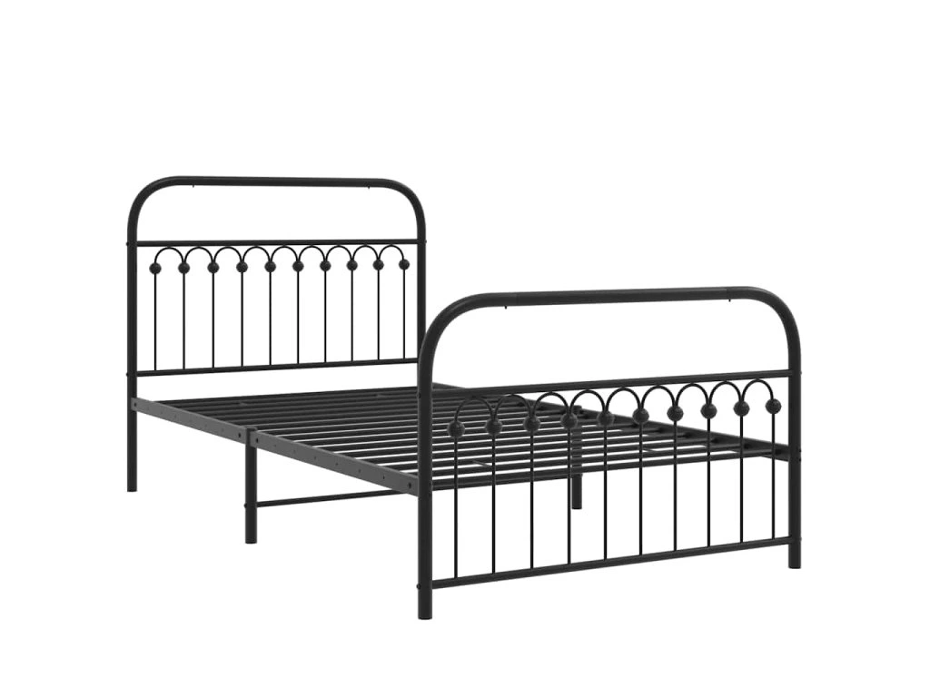 Kovový rám postele s hlavovým a nožním čelem černý 107 x 203 cm 376614