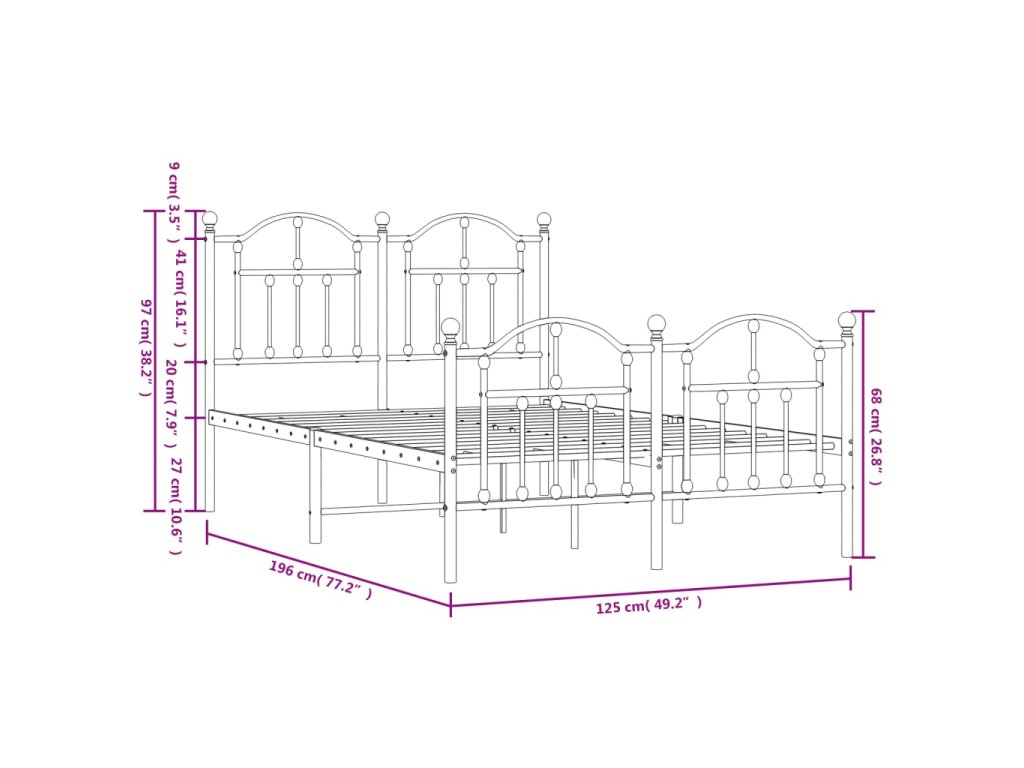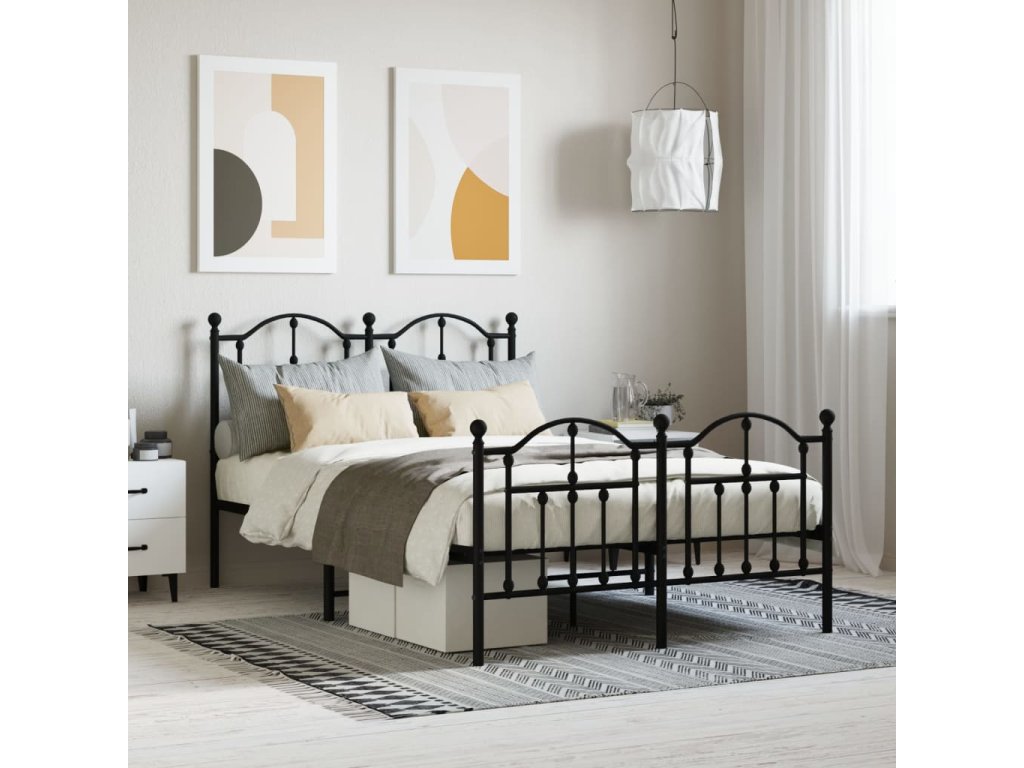 Kovový rám postele s hlavovým a nožním čelem černý 120 x 190 cm 353454