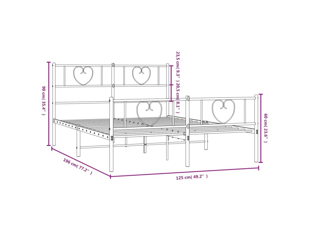 Kovový rám postele s hlavovým a nožním čelem černý 120 x 190 cm 355478