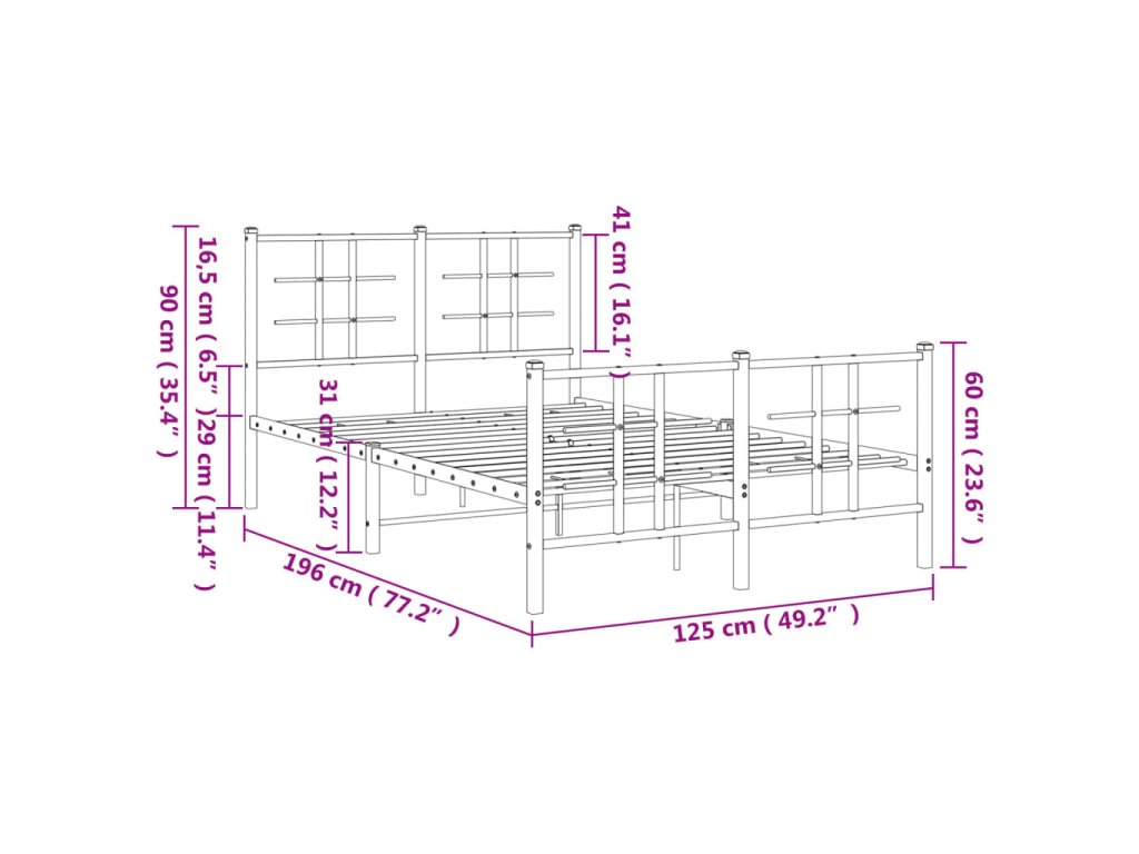 - Kovové lamely a nohy: Kovový rám postele je doplněn kovovými rošty a středovými nohami, které poskytují matraci tolik potřebnou oporu a prodyšnost.