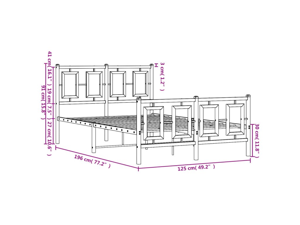 Kovový rám postele s hlavovým a nožním čelem černý 120 x 190 cm 374256