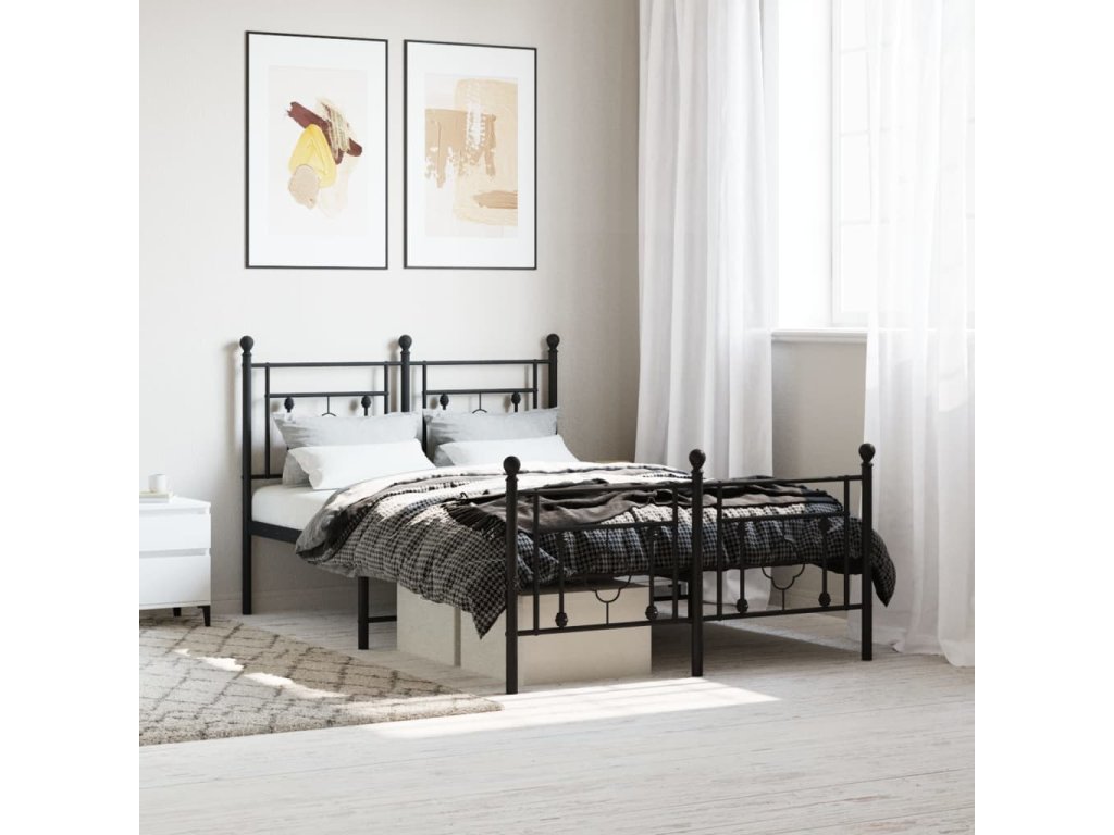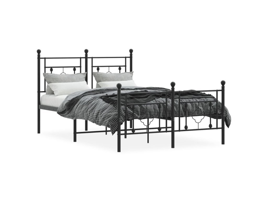 Kovový rám postele s hlavovým a nožním čelem černý 120 x 190 cm 374354