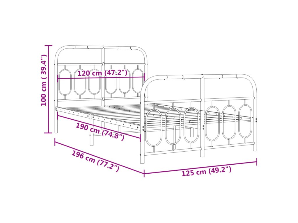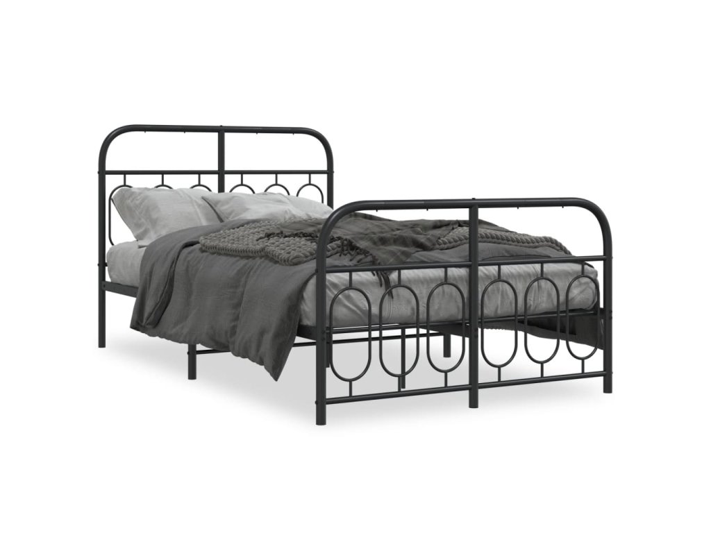 Kovový rám postele s hlavovým a nožním čelem černý 120 x 190 cm 377132