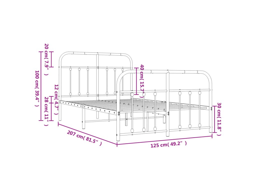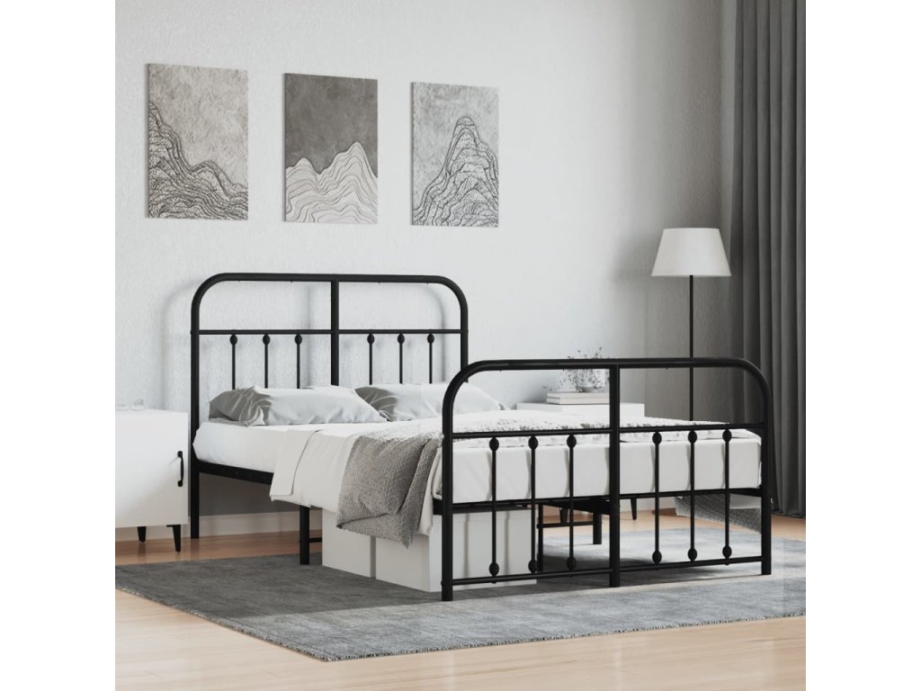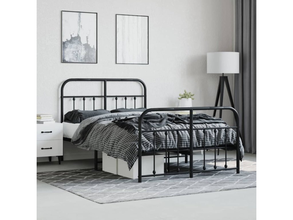 Kovový rám postele s hlavovým a nožním čelem černý 120 x 200 cm 352594