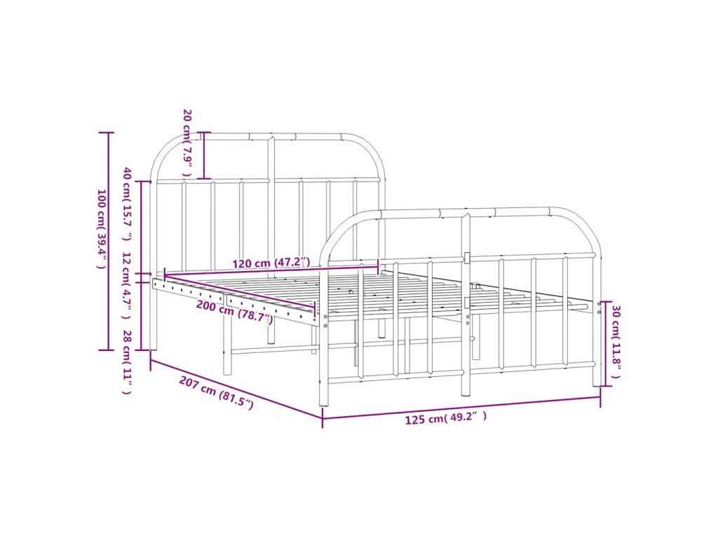 Kovový rám postele s hlavovým a nožním čelem černý 120 x 200 cm 353651