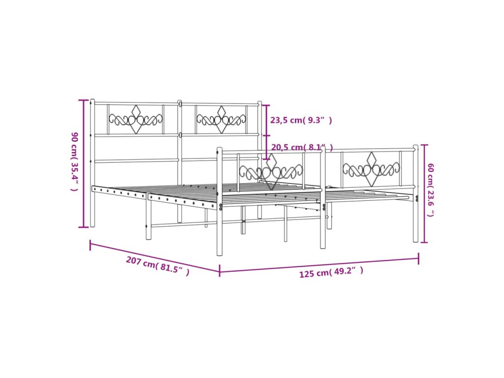 - Kovové lamely a nohy: Kovový rám postele je doplněn kovovými rošty a středovými nohami, které poskytují matraci tolik potřebnou oporu a prodyšnost.