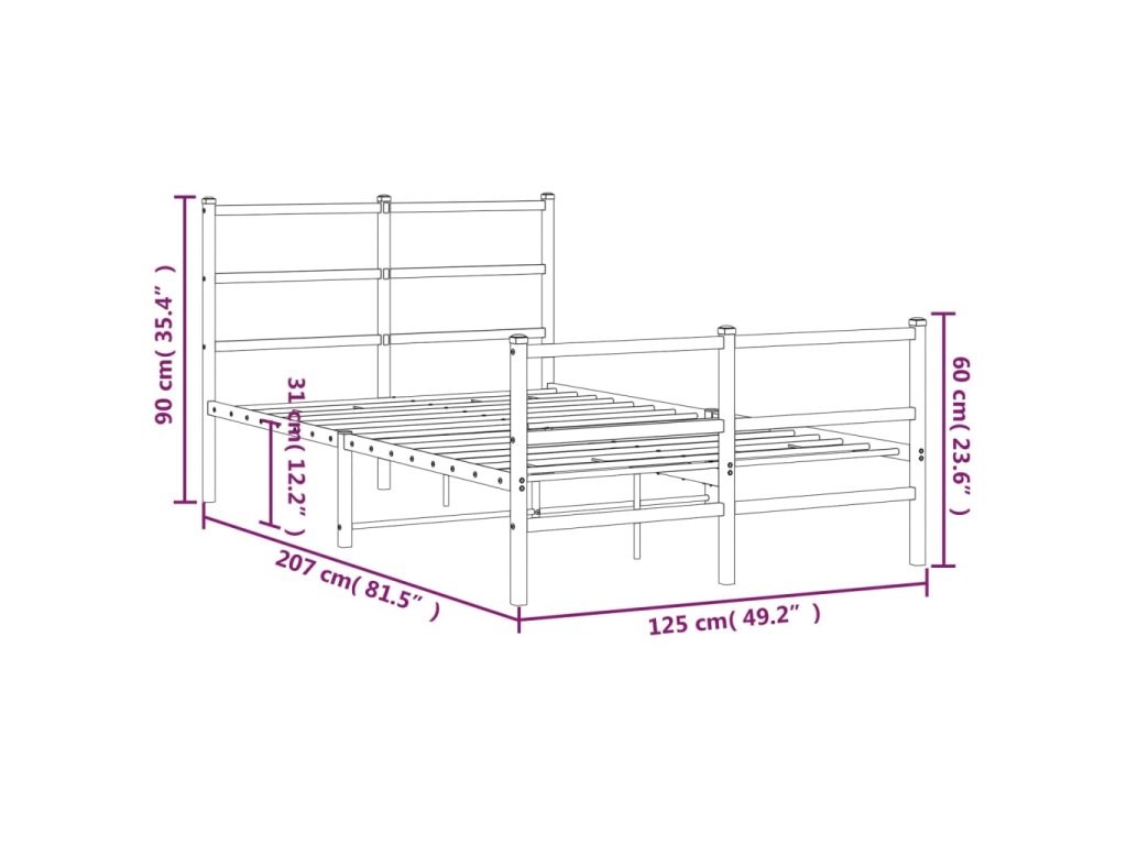 Kovový rám postele s hlavovým a nožním čelem černý 120 x 200 cm 355381