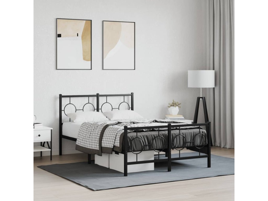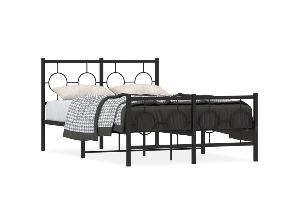 Kovový rám postele s hlavovým a nožním čelem černý 120 x 200 cm 376242
