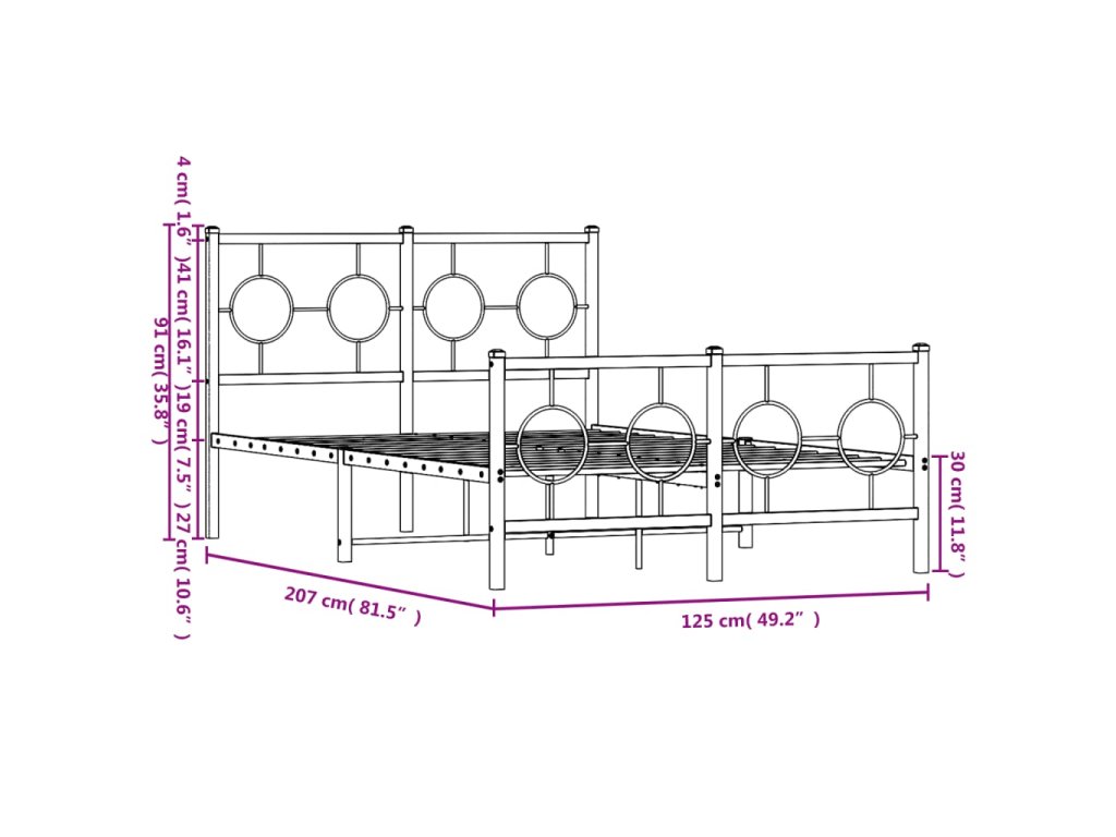 - Kovové lamely a nohy: Kovový rám postele je doplněn kovovými rošty a středovými nohami, které poskytují matraci tolik potřebnou oporu a prodyšnost.