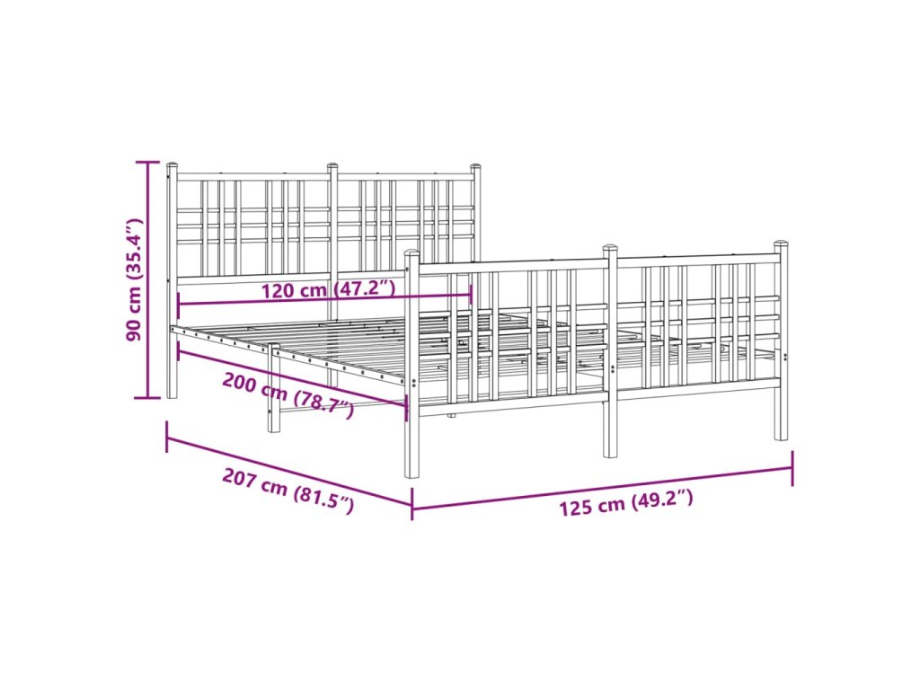 Kovový rám postele s hlavovým a nožním čelem černý 120 x 200 cm 376340