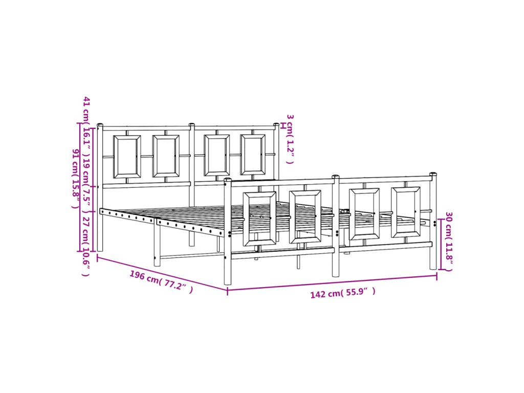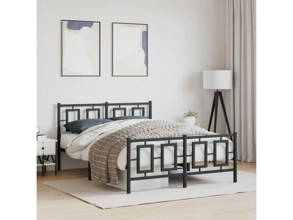 Kovový rám postele s hlavovým a nožním čelem černý 135 x 190 cm 374258
