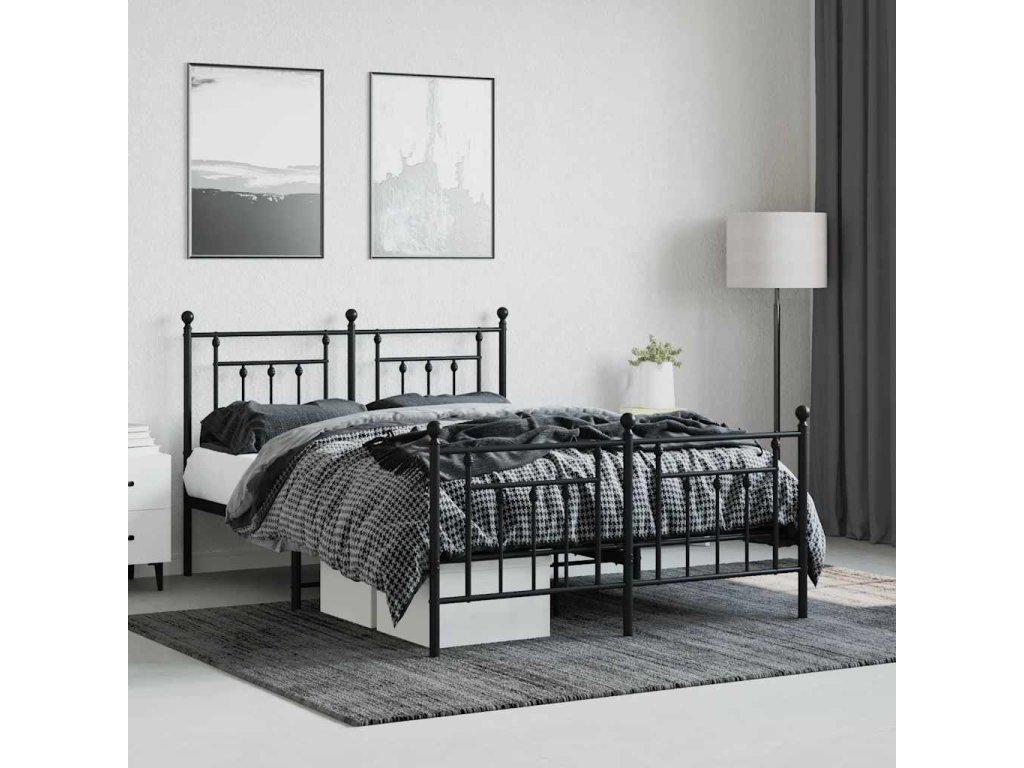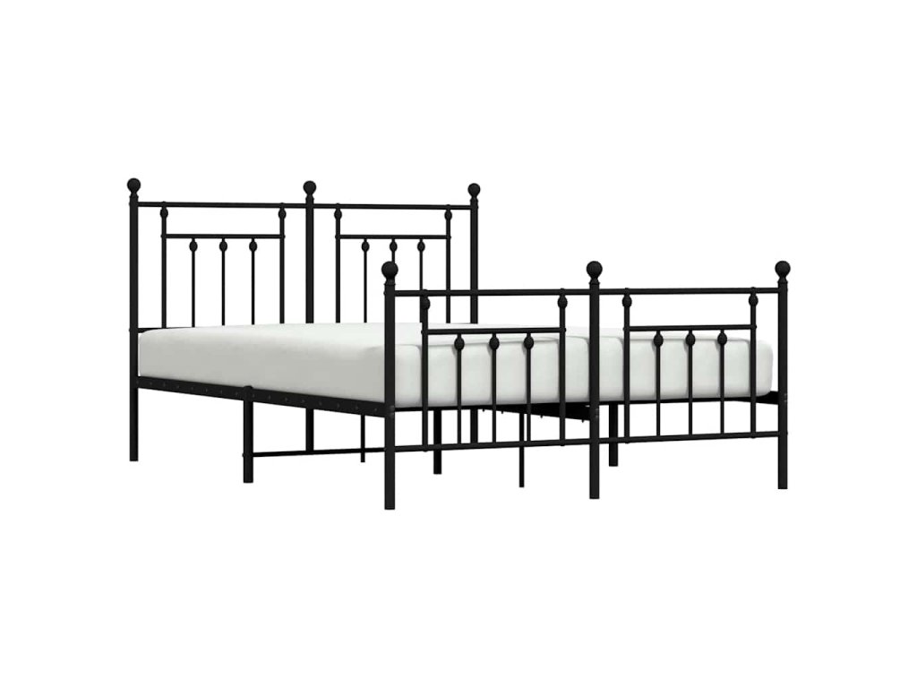 Kovový rám postele s hlavovým a nožním čelem černý 140 x 190 cm 353555