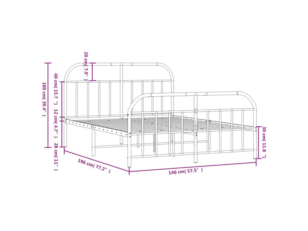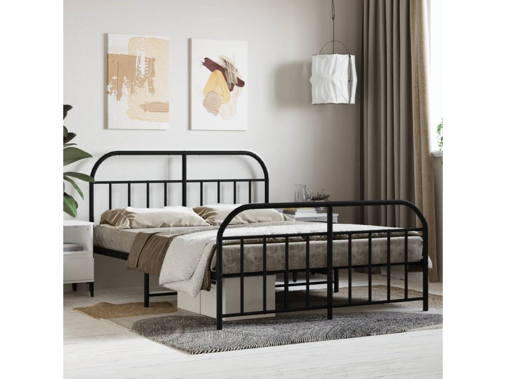 Kovový rám postele s hlavovým a nožním čelem černý 140 x 190 cm 353653