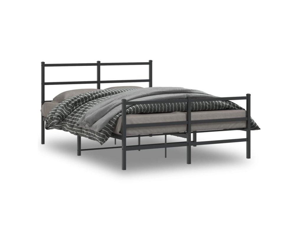 Kovový rám postele s hlavovým a nožním čelem černý 140 x 190 cm 355383