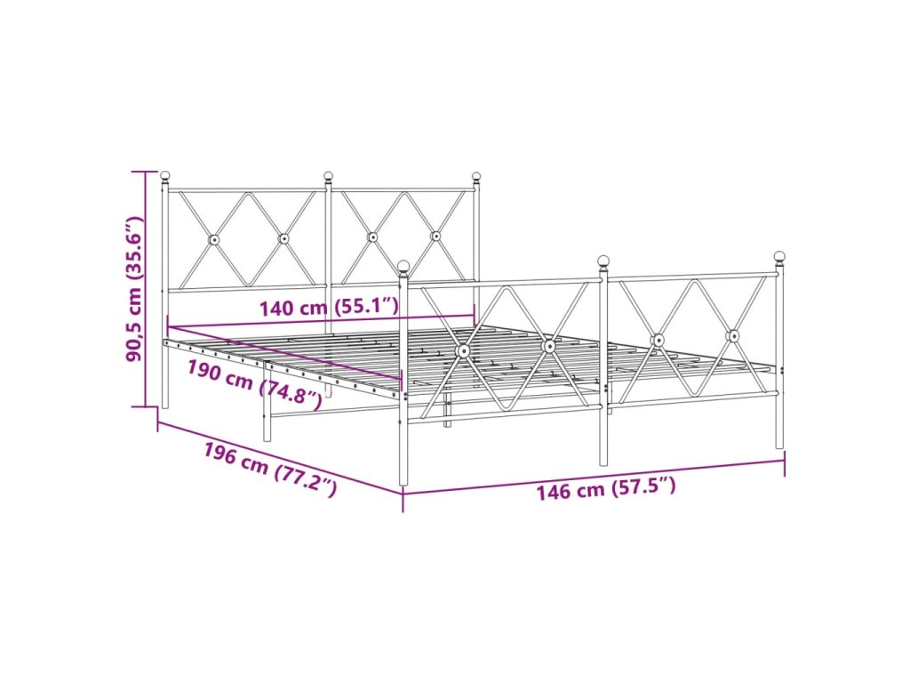Kovový rám postele s hlavovým a nožním čelem černý 140 x 190 cm 376520