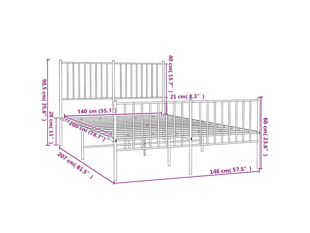 Kovový rám postele s hlavovým a nožním čelem černý 140 x 200 cm 350883