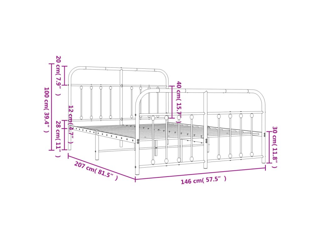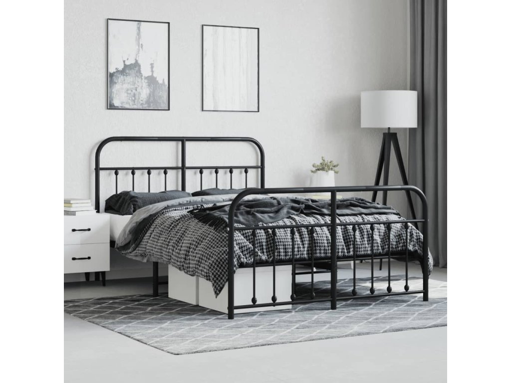 Kovový rám postele s hlavovým a nožním čelem černý 140 x 200 cm 352597