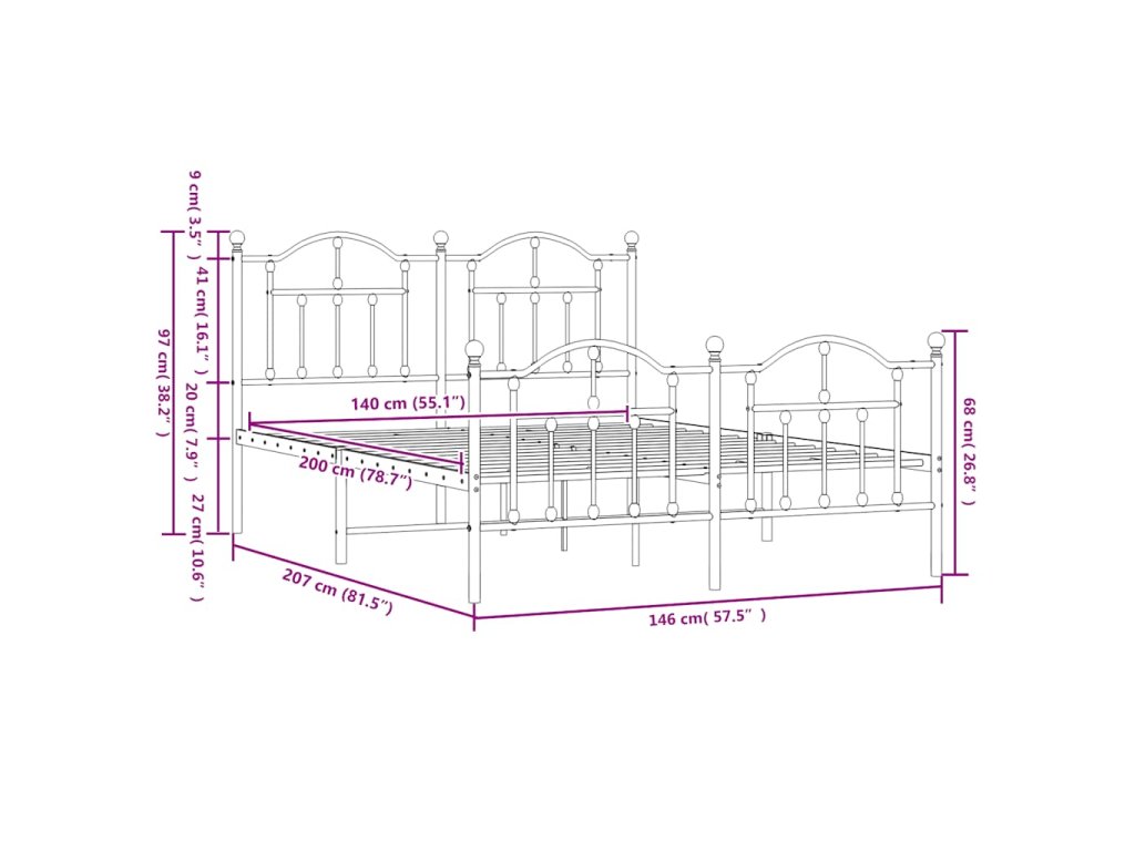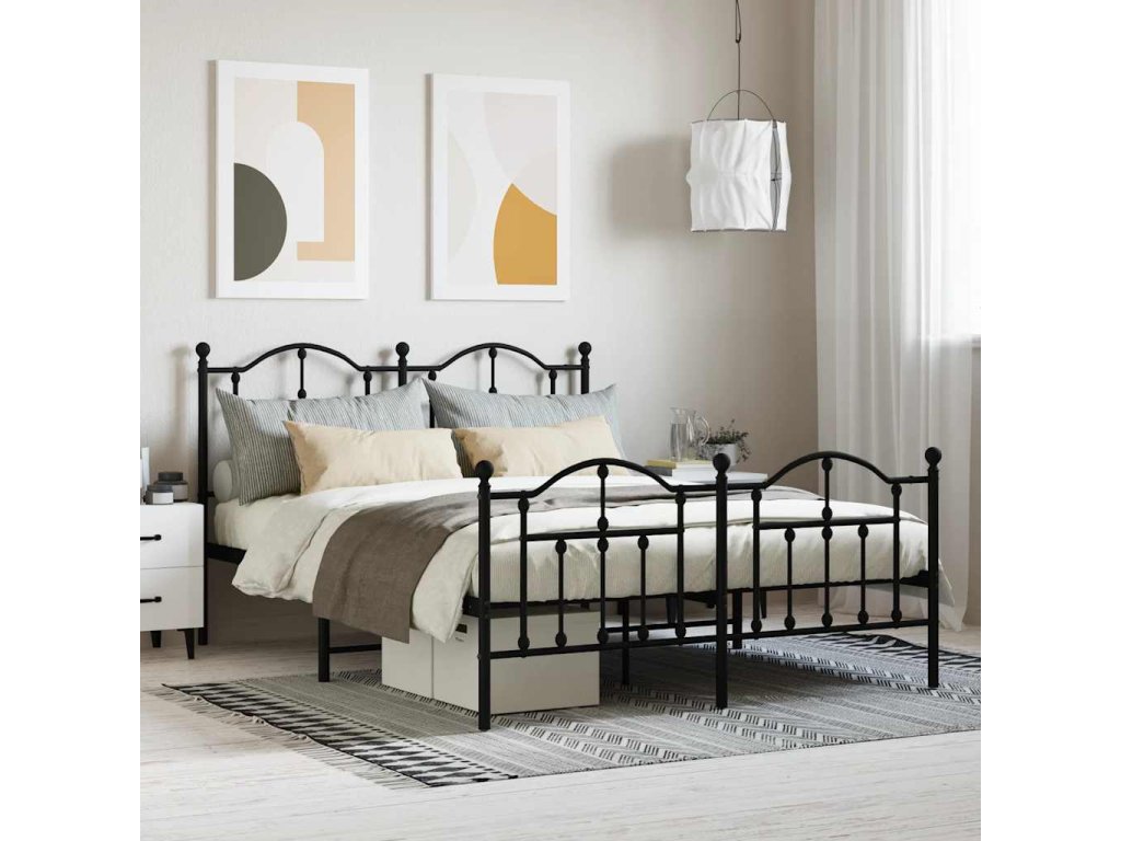 Kovový rám postele s hlavovým a nožním čelem černý 140 x 200 cm 353458