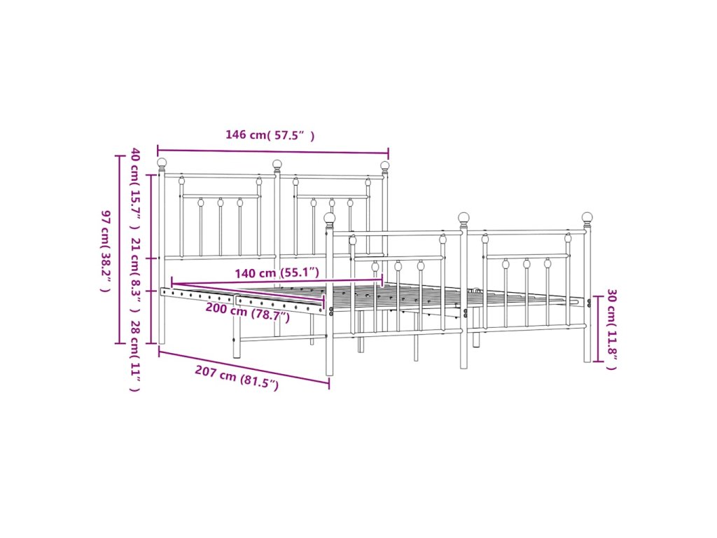 - Vhodné rozměry matrace: 140 x 200 cm (Š x D) (matrace není součástí balení)